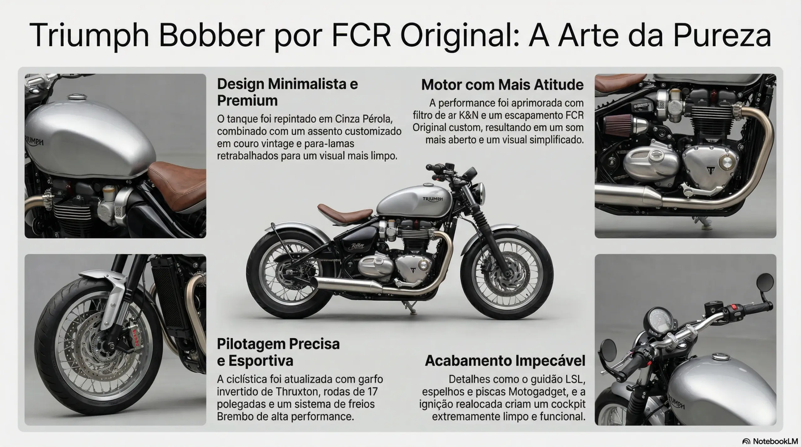 Quando a renomada oficina francesa FCR Original se propõe a customizar uma motocicleta, o resultado é, invariavelmente, uma obra de arte que redefine o conceito de refinamento. Mas quando a comunidade de customização internacional a descreve como a construção customizada da TRIUMPH BOBBER mais limpa que já vimos