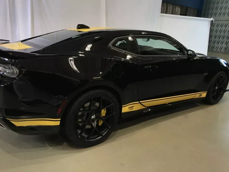لا تُعتبر كامارو هيندريك إديشن المحدودة من هيرتز نادرة فحسب، بل هي أيضًا ذات مظهر لافت. الهيكل الأسود، المزخرف بتفاصيل وخطوط صفراء زاهية، يجذب الانتباه. العجلات بحجم 20 بوصة باللون الأسود الساتاني، عتبات الأبواب المضيئة، ومكابح الفرامل الصفراء تعزز من حصرية السيارة. تفاصيل مثل مقدمة السيارة والشعارات الخاصة بهيرتز على الجوانب تُكمل المظهر الفريد.