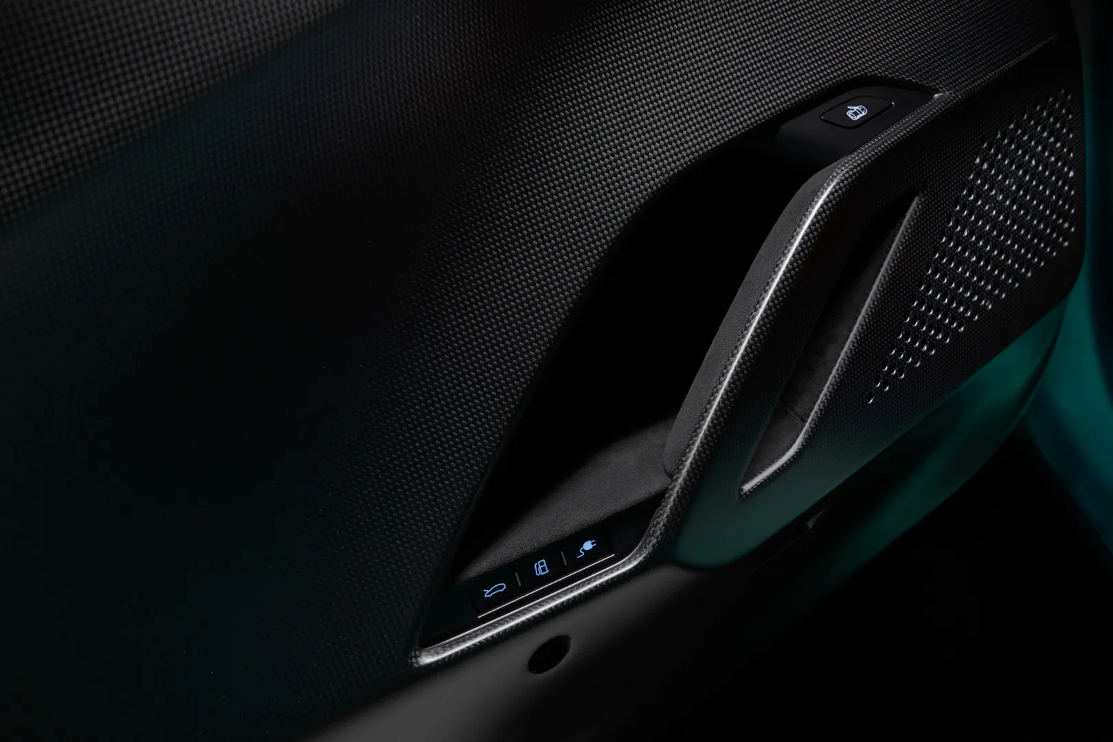 داخل المقصورة، التركيز كله على السائق. يُهيمن على البيئة استخدام ألياف الكربون والألكانتارا، بينما يحافظ المقود المستوحى من السباقات ولوحة العدادات الرقمية المبسطة على المعلومات الأساسية في متناول الرؤية. تسمح أنظمة مثل التحكم في الجر والثبات FDE+ ونظام مانيتينو مع وضعيات قيادة قابلة للتعديل باكتشاف كامل إمكانيات السيارة بأمان.