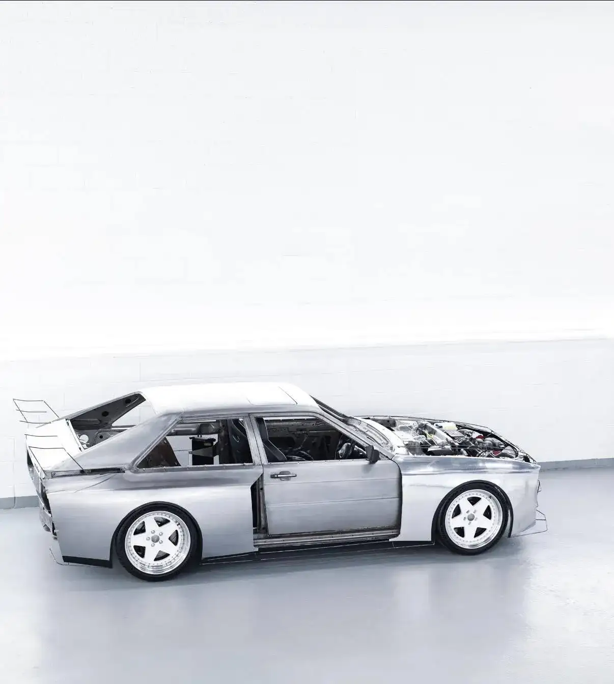 Não é só o conjunto mecânico que recebeu atenção. A carroceria está sendo profundamente retrabalhada com inspiração no Audi S1 Quattro, o monstro de homologação que virou símbolo definitivo da era Grupo B. Isso significa para-lamas alargados, entradas de ar mais agressivas, novo conjunto frontal, traseira com presença dramática e elementos aerodinâmicos que vão muito além da estética.