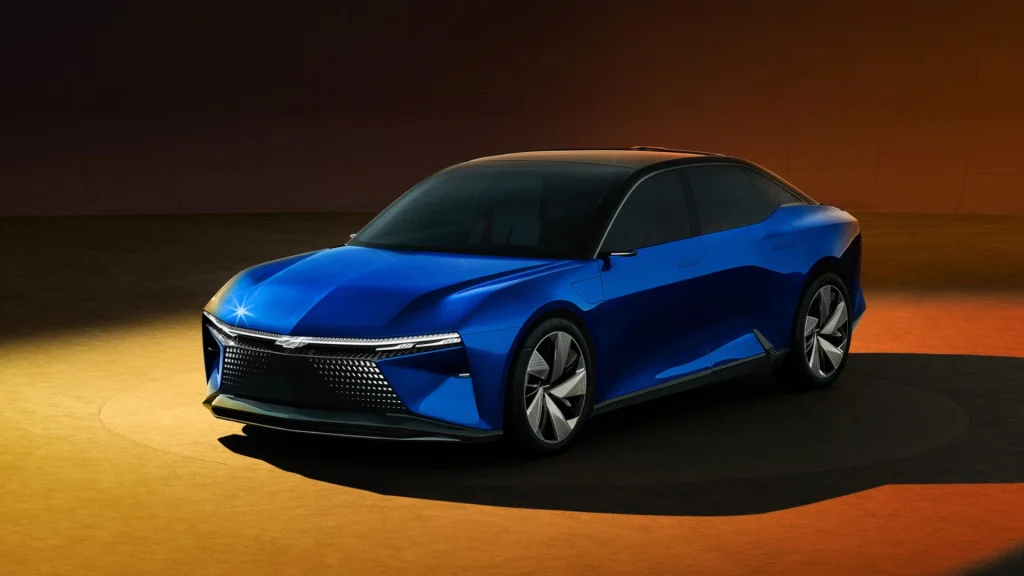 A resposta pode estar em um conceito apresentado pela GM no China Tech Day 2022: o Chevrolet FNR-XE, o primeiro sedã elétrico da marca. O modelo tem um design que lembra o Camaro, principalmente no capô e nos faróis, mas com uma carroceria mais alongada e aerodinâmica. O FNR-XE usa a plataforma Ultium da GM, que permite compartilhar motores e baterias com outros veículos elétricos da montadora, como o Hummer EV.