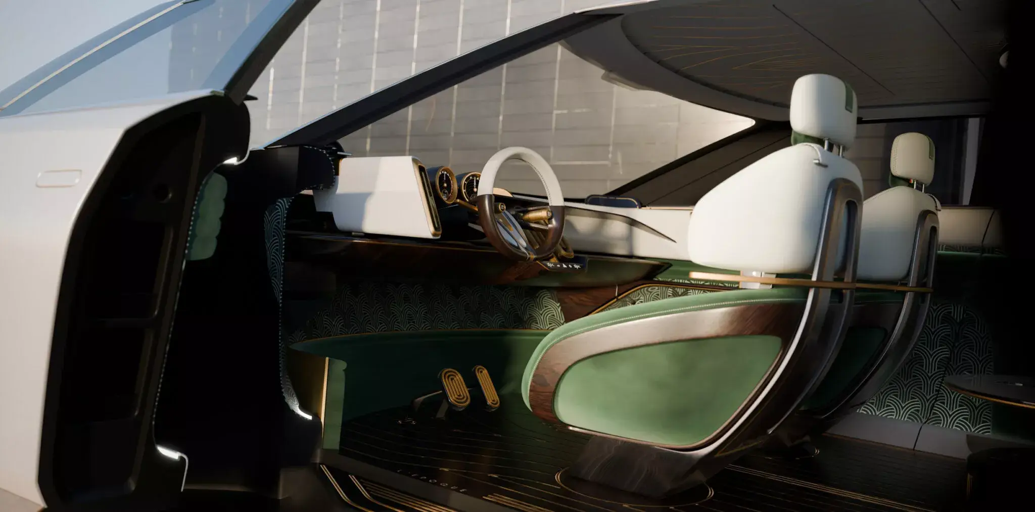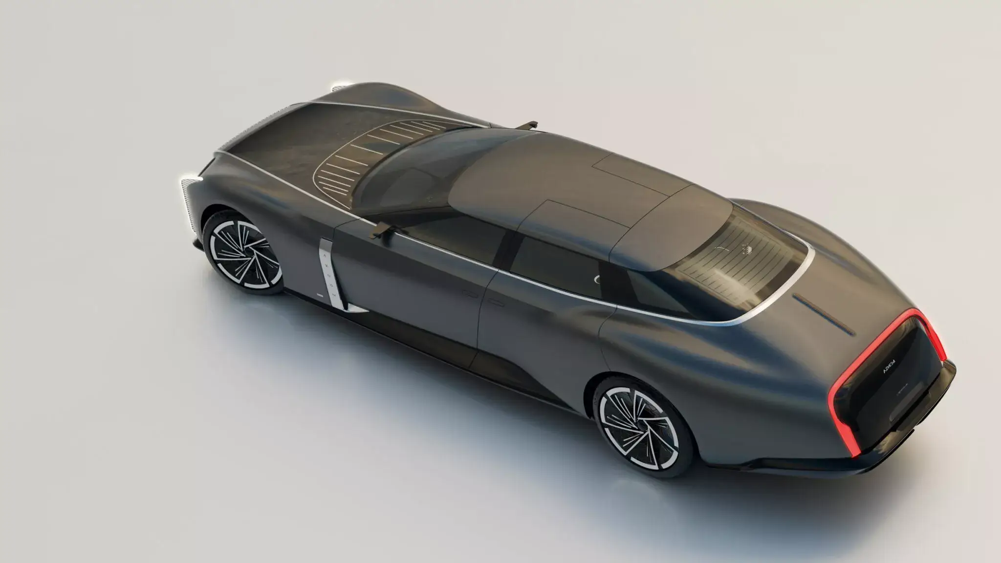 O interior é uma declaração clara de filosofia: menos telas expostas, mais silêncio, artesanato e relaxamento. Em vez de uma lanterna traseira tradicional, o projeto prioriza um salon sobre rodas.