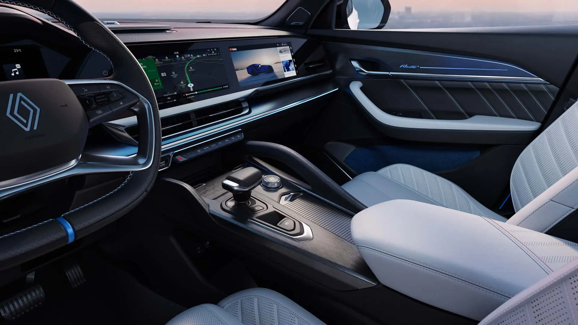 Além do trio de telas, o Filante introduz um head-up display de realidade aumentada de 25,6 polegadas, que projeta informações vitais diretamente no para-brisa, integrando-as ao ambiente real. É o tipo de tecnologia que coloca a marca em pé de igualdade com gigantes alemães, como vimos no lançamento do Mercedes-Benz EQE320+ SUV 2026, embora o modelo francês aposte no sistema híbrido para oferecer maior autonomia em viagens longas. O acabamento dos bancos “Lounge” utiliza materiais sustentáveis que imitam o couro com perfeição, enquanto molduras metálicas e iluminação ambiente configurável elevam a percepção de valor.