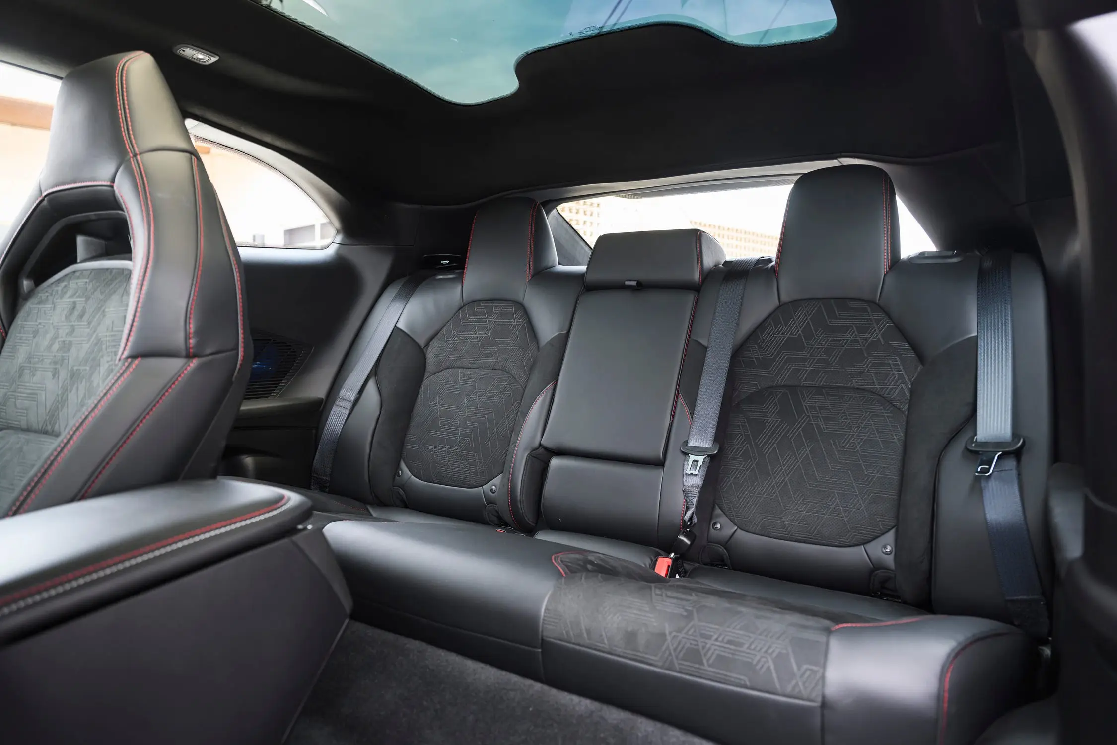 Im Innenraum bietet das Fahrzeug großzügigen Komfort, insbesondere im Fond, und überrascht mit mehr Beinfreiheit im Vergleich zum Benzin-Challenger. Ein auffälliges Element ist die neue zentrale Konsole mit modern gestalteten „Pistol Grip“-Schaltknauf, die eine intuitive Bedienung für den Fahrer ermöglicht. Obwohl das Design ansprechend ist, kritisieren einige, dass die Materialien noch hochwertiger sein könnten, was jedoch die Benutzerfreundlichkeit oder den Gesamteindruck nicht beeinträchtigt.