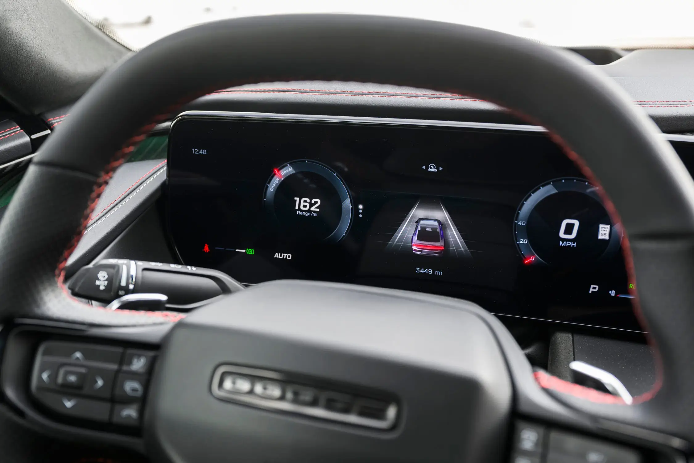 Der traditionelle V8-Motor wird durch ein duales elektrisches Antriebssystem ersetzt, das bis zu 670 kombinierte PS und ein robustes Drehmoment von 627 lb-ft liefert. Dieses Antriebssystem ist auf beide Achsen verteilt und bietet Allradantrieb (AWD), das Stabilität und Leistung unter allen Bedingungen garantiert.