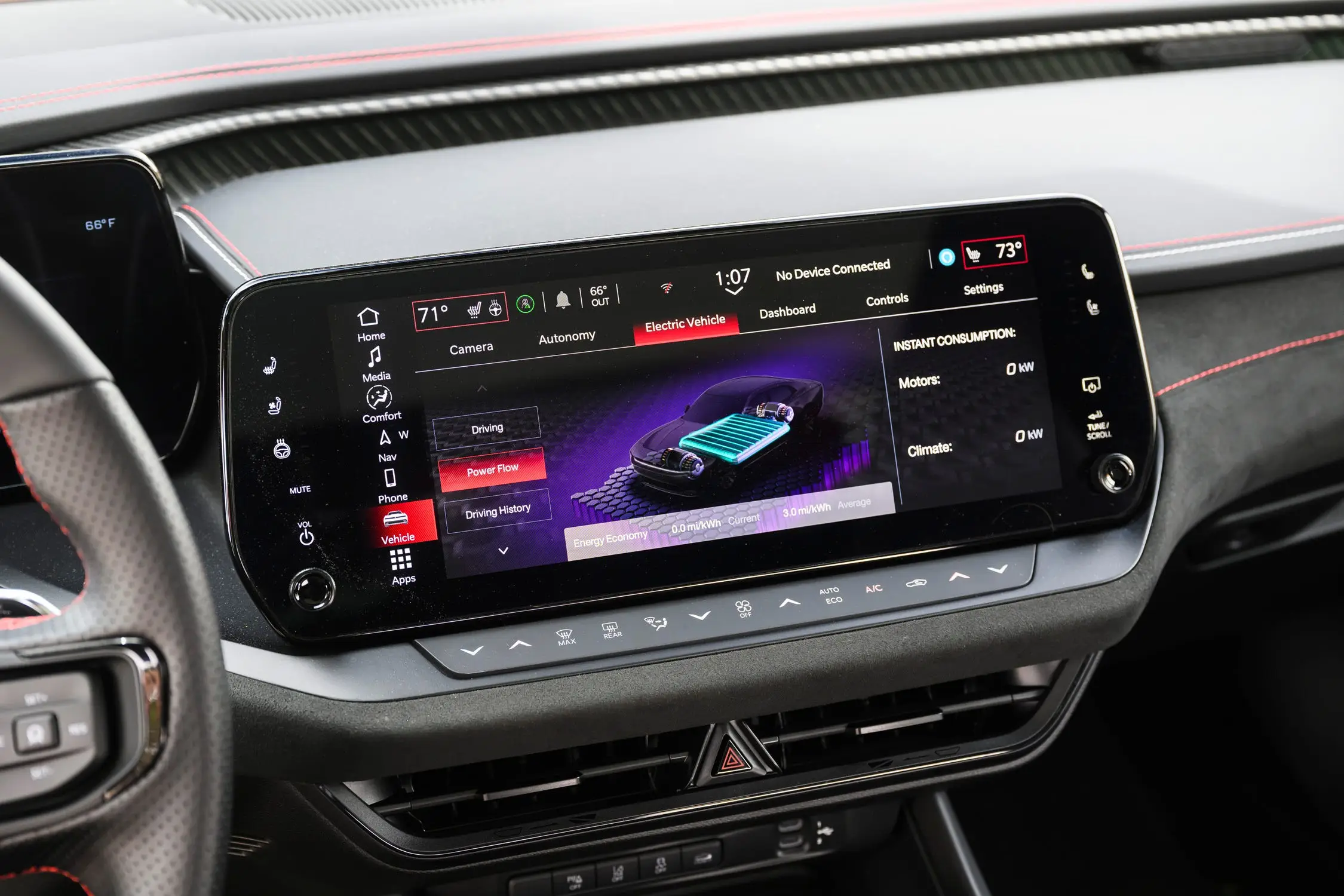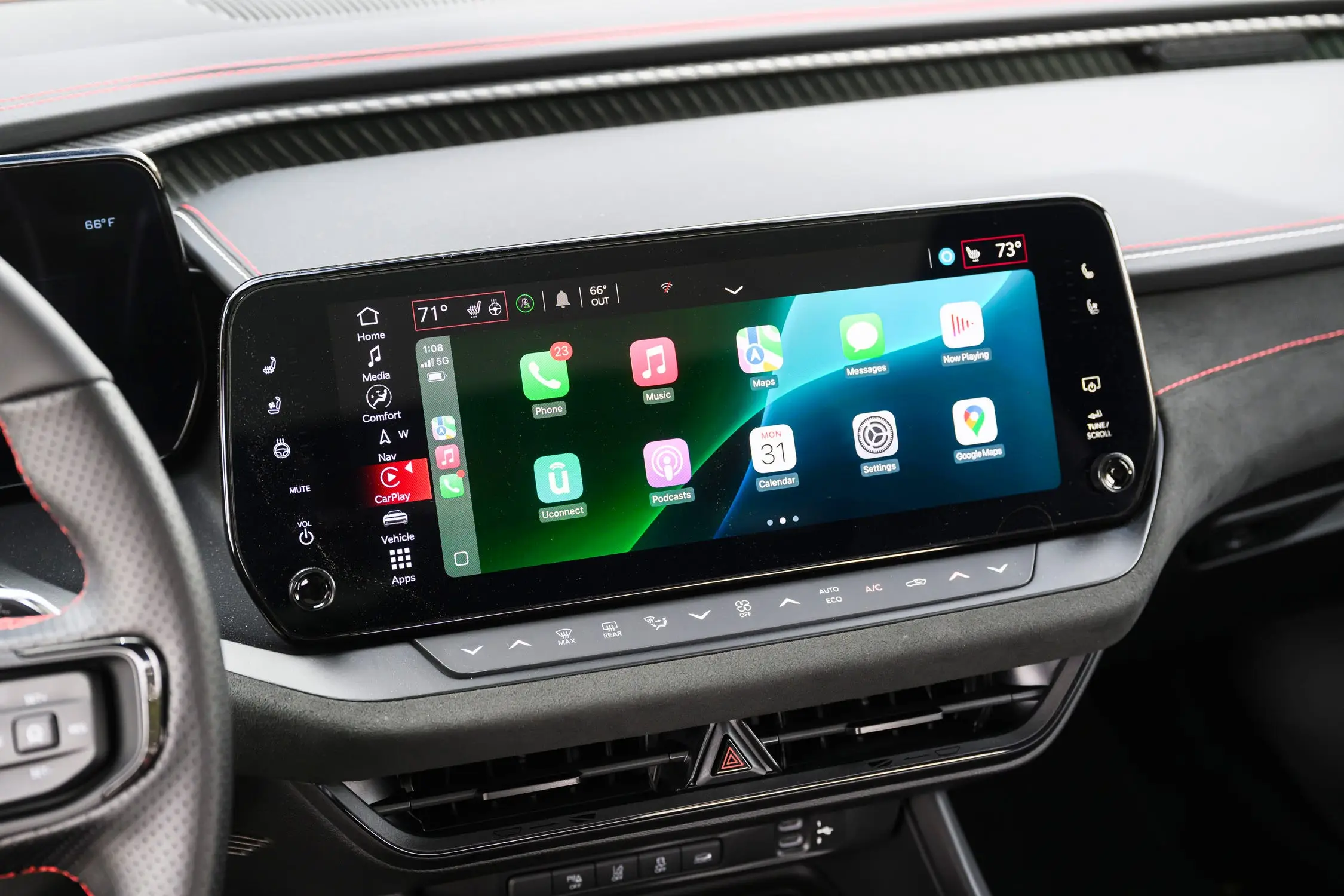 Neben schnellem Laden verfügt das Modell über das Uconnect 5 Infotainmentsystem auf einem 12,3-Zoll-Touchscreen, das Apple CarPlay und Android Auto kabellos unterstützt. Die Integration von Amazon Alexa und ein Navigationssystem mit Ladestationenfinder garantieren eine nahtlose und vernetzte digitale Erfahrung.