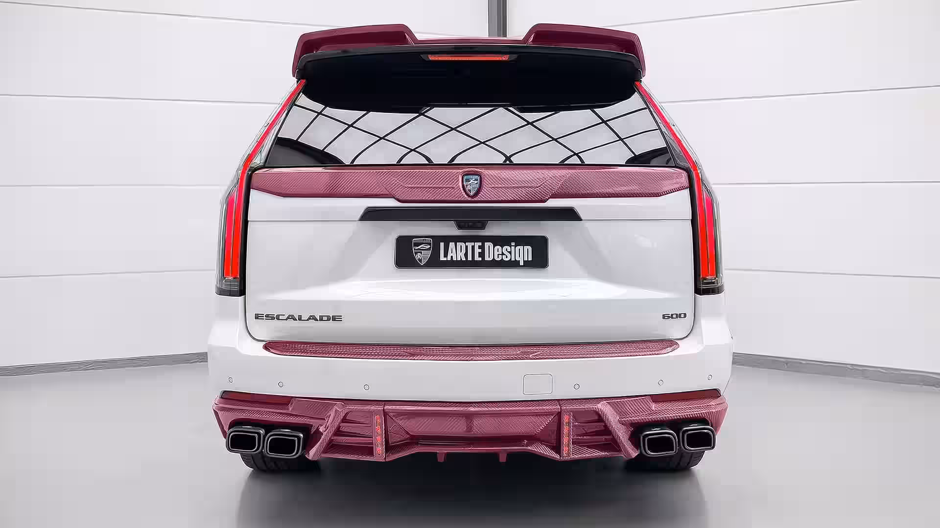 Yet this is not a random wrap job or social-media-only show car. The technical side is what gives the build credibility. According to Larte Design, the project uses a tailored Esthete body kit made specifically for the refreshed Escalade platform, with 17 exterior components reshaping the front, sides, and rear. The design changes are dramatic, but the real hook is the material itself.
