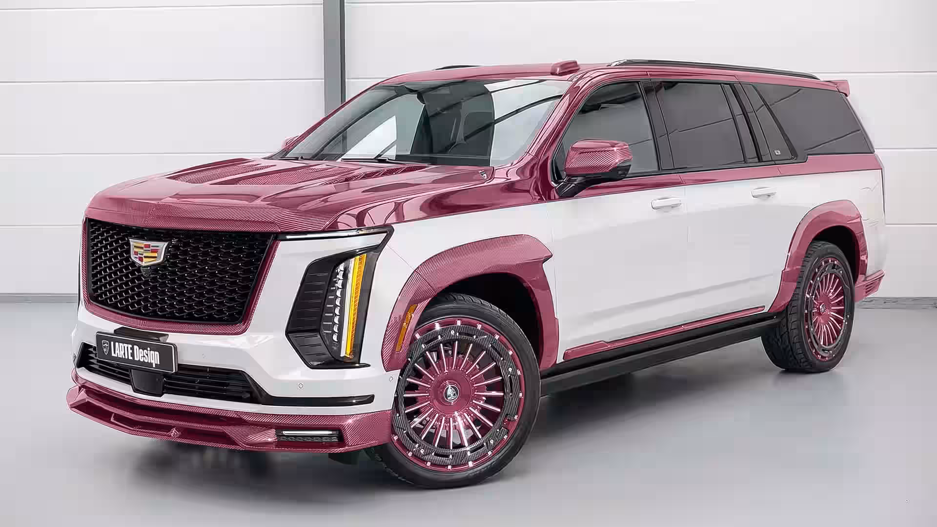 The latest custom CADILLAC ESCALADE by Larte Design takes one of America’s most imposing full-size SUVs and pushes it into a completely different visual category. Based on the facelifted 2024 to 2026 Escalade, this build combines a white exterior with intensely vivid pink visible carbon fiber, creating a finish that looks more like a concept car than something intended for real streets.
