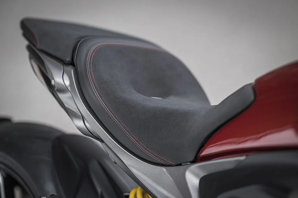 This means you can switch between relaxed cruising and aggressive riding without changing bikes. Comparing it to the Rocket 3 (roadster/GT) and Fat Boy (classic cruiser), only Ducati offers such dual character so effortlessly. If customization without limits appeals to you, check out Ducati Performance’s catalog: racing exhaust (+11 hp, -24 lbs), custom seats, side cases, and more.