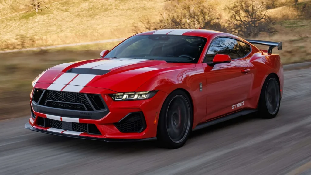 The GT350 line offers two distinct versions: the standard Shelby GT350, focused on performance and daily usability, and the GT350R, a more aggressive version designed for track use. The standard GT350 already delivers impressive performance, with 810 horsepower and transmission options that adapt to daily use. It offers a balance between comfort and sporty capability, making it a versatile choice for different driving styles.