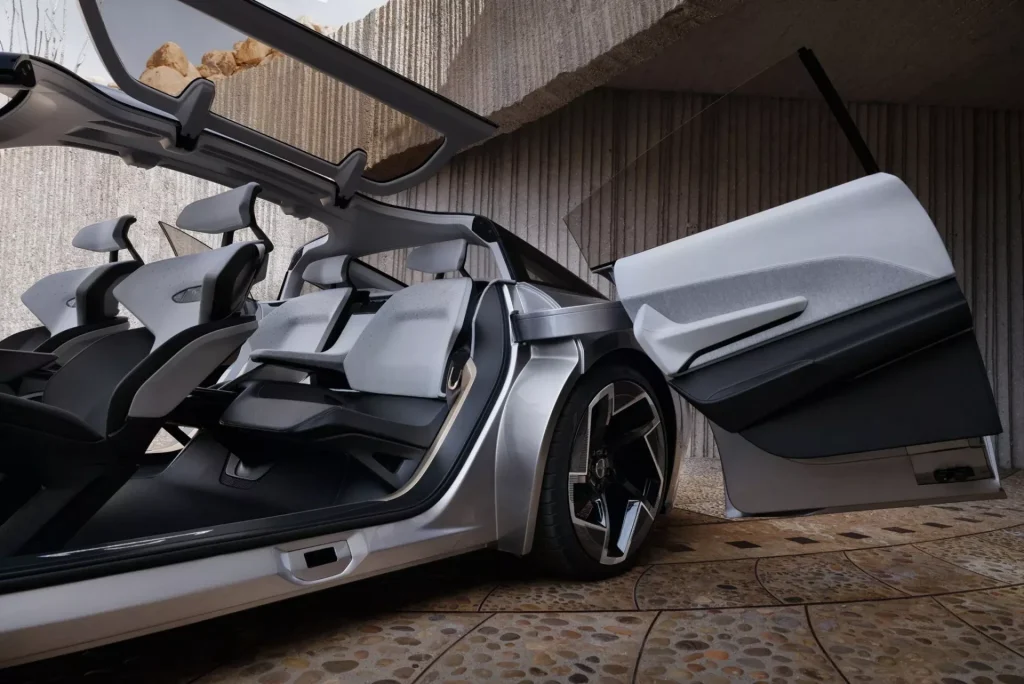 The Chrysler Halcyon Concept, revealed in 2024, offers a bold vision for luxury electric mobility. This futuristic 4-door sedan combines an innovative aerodynamic design, featuring “suicide” doors and a “butterfly-wing” roof, with a minimalist interior that prioritizes well-being and sustainability, using up to 95% recycled materials.