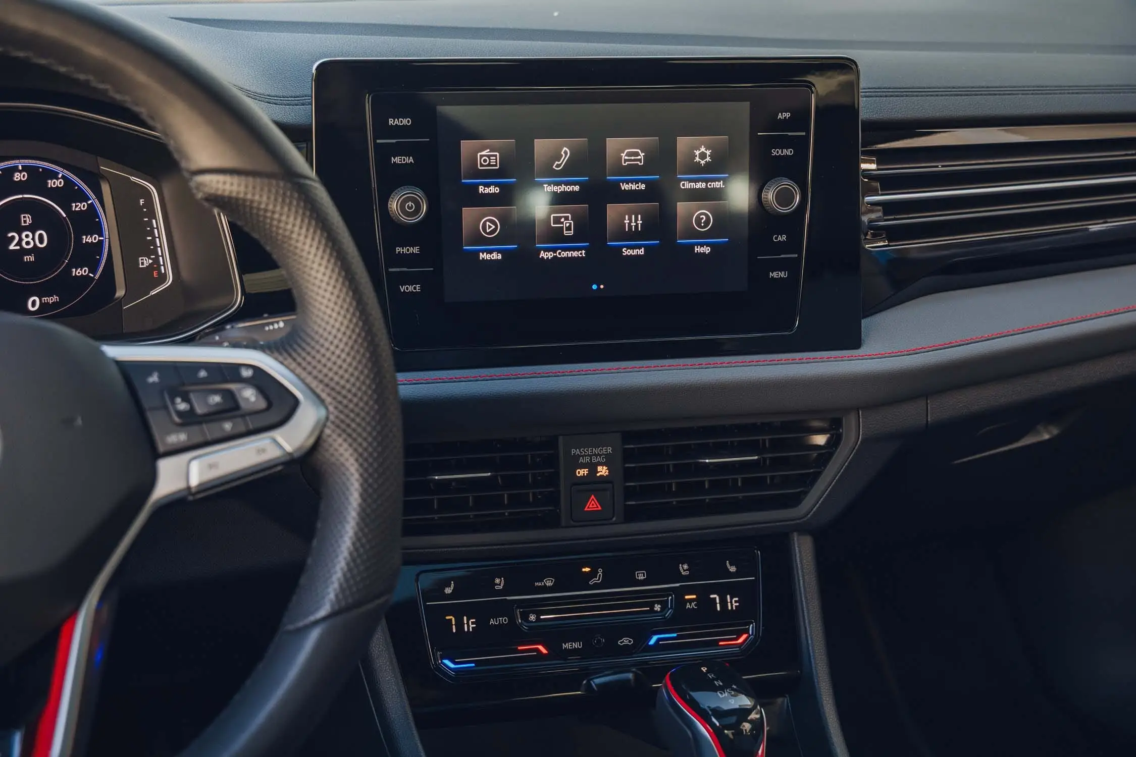 The biggest headline for the 2026 VOLKSWAGEN JETTA GLI might seem trivial to laypeople, but it is a monumental victory for serious drivers: the return of physical buttons on the steering wheel. After years of severe criticism about capacitive (touch-sensitive) controls that plagued the VW line and caused accidental touches in corners, German engineering took a step back to leap two steps forward. The GLI Autobahn’s steering wheel now features real pressure buttons with precise tactile feedback. This is not just nostalgia; it enhances safety and usability for performance driving.