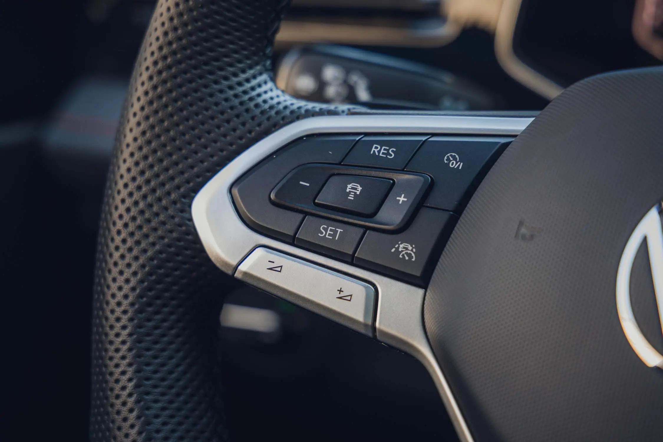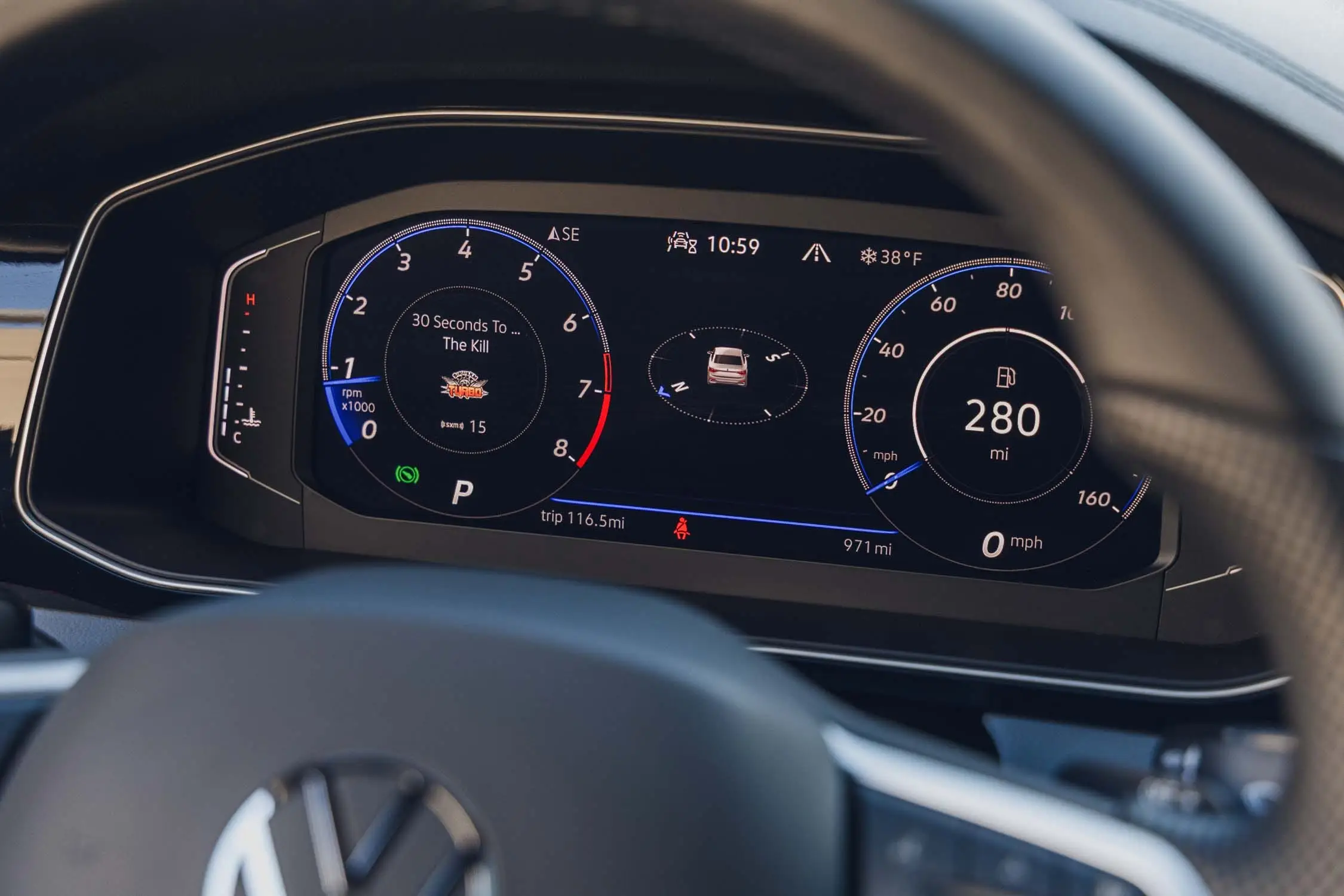 Dynamic Chassis Control (DCC) comes standard. This adaptive damping system reads the road and driver behavior thousands of times per second, adjusting the stiffness of each individual shock absorber. In “Comfort” mode, the GLI absorbs imperfections like a luxury sedan. Switch to “Sport,” and the car “lowers” itself, stiffening the suspension to eliminate body roll in corners.