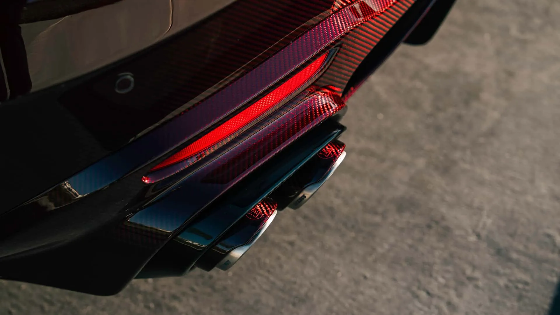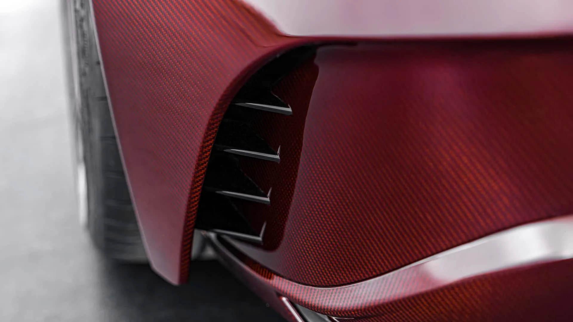 Las soluciones no son decorativas: la punta afilada, el difusor funcional y el ducktail-spoiler trabajan para estabilizar el eje trasero a altas velocidades, mientras que la geometría del flujo reduce el lift frontal. No es solo un «guau» visual — es una eficiencia aerodinámica medible.
