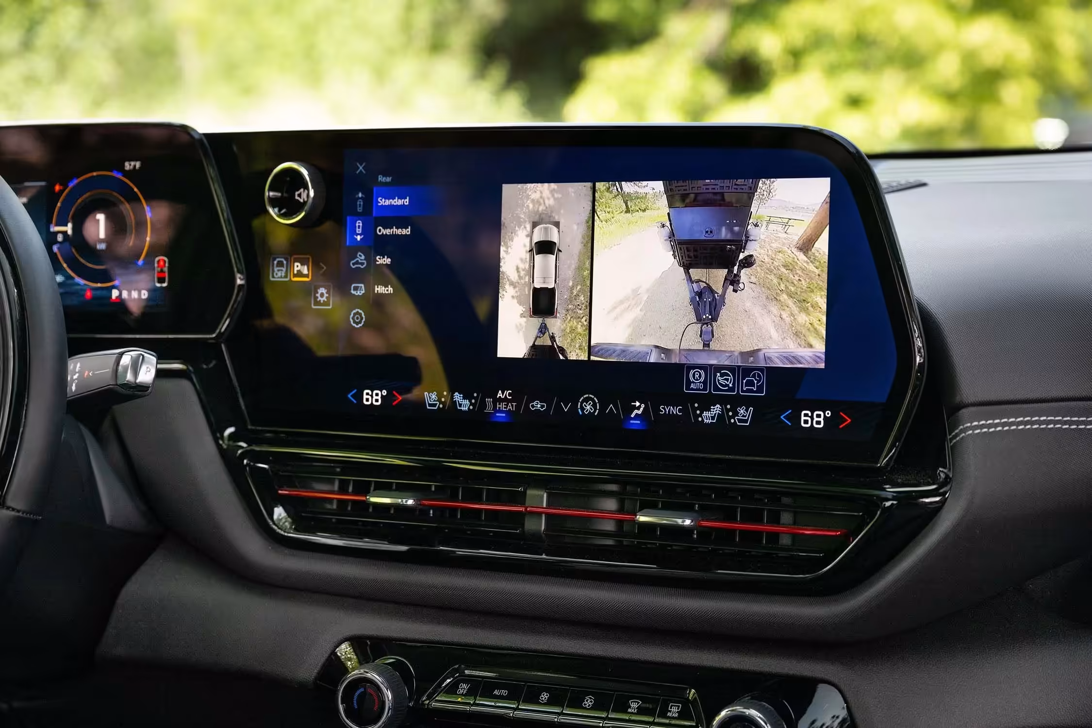 A primera vista, la identidad visual no pasa desapercibida: ruedas de aleación de 18” con acabado negro brillante, neumáticos Goodyear Wrangler All-Terrain de 35 pulgadas, ganchos de remolque en rojo y suspensión elevada. Pero la verdadera revolución está en las funciones inteligentes de conducción fuera de carretera que solo la Trail Boss ofrece.