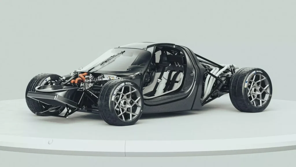 Su innovadora tecnología permite el cambio del subchasis, alternando entre la motorización de combustión (ICE) y la eléctrica (EV), una versatilidad sin precedentes en el segmento de los hiperdeportivos.