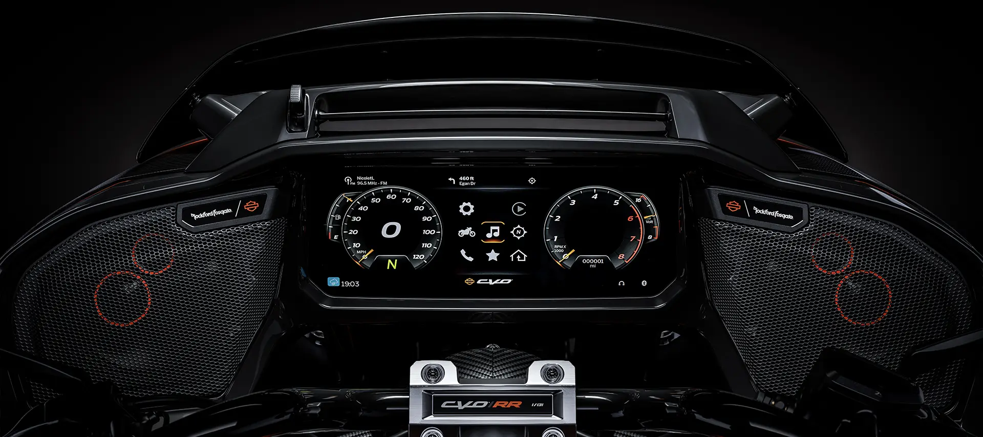 La Harley-Davidson CVO Road Glide RR no se destaca solo por el rendimiento mecánico, sino también por la tecnología incorporada. El sistema de infotenimiento Skyline OS, con pantalla de 12.3″, representa un salto cuántico en términos de conectividad y funcionalidades. El sistema es impulsado por un procesador Qualcomm Snapdragon Ride con arquitectura heterogénea (CPU+GPU+NPU), dedicando núcleos específicos para diferentes tareas, garantizando un rendimiento fluido y rápido.
