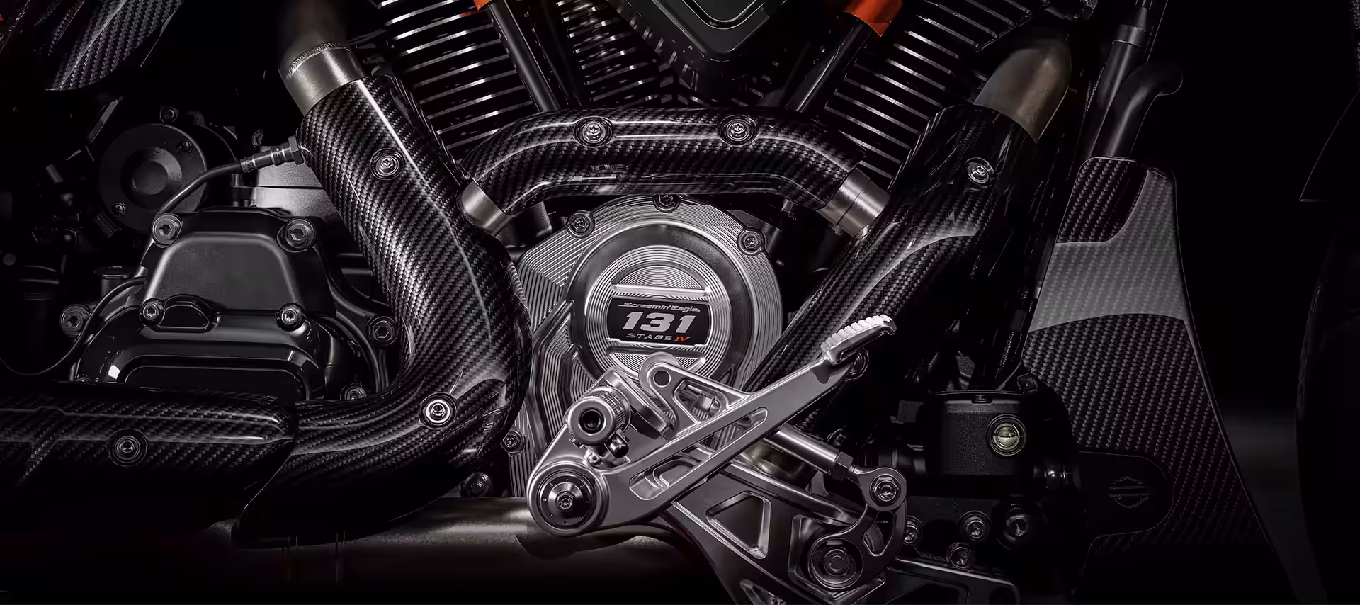 La transmisión King 6, presente en la CVO Road Glide RR, también recibió atención especial. Las engranajes rectificados con perfil helicoidal reducen significativamente el ruido operativo en 4dB(A), proporcionando una experiencia de pilotaje más refinada y silenciosa. Además, la transmisión está diseñada para soportar cargas de torque transitorio de hasta 180 lb-pie, garantizando la durabilidad y confiabilidad incluso en condiciones de uso extremas.