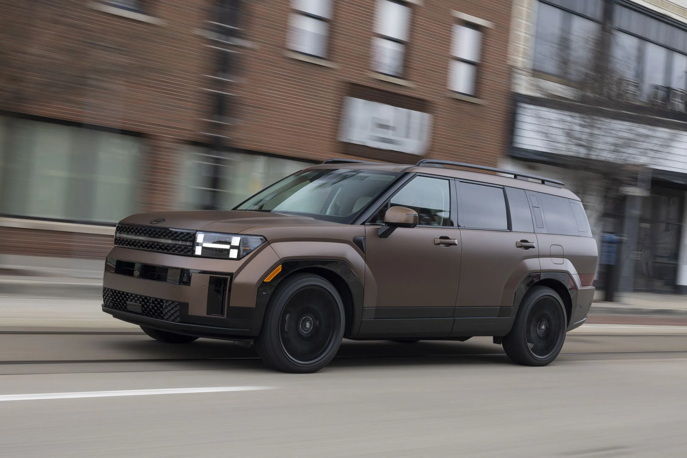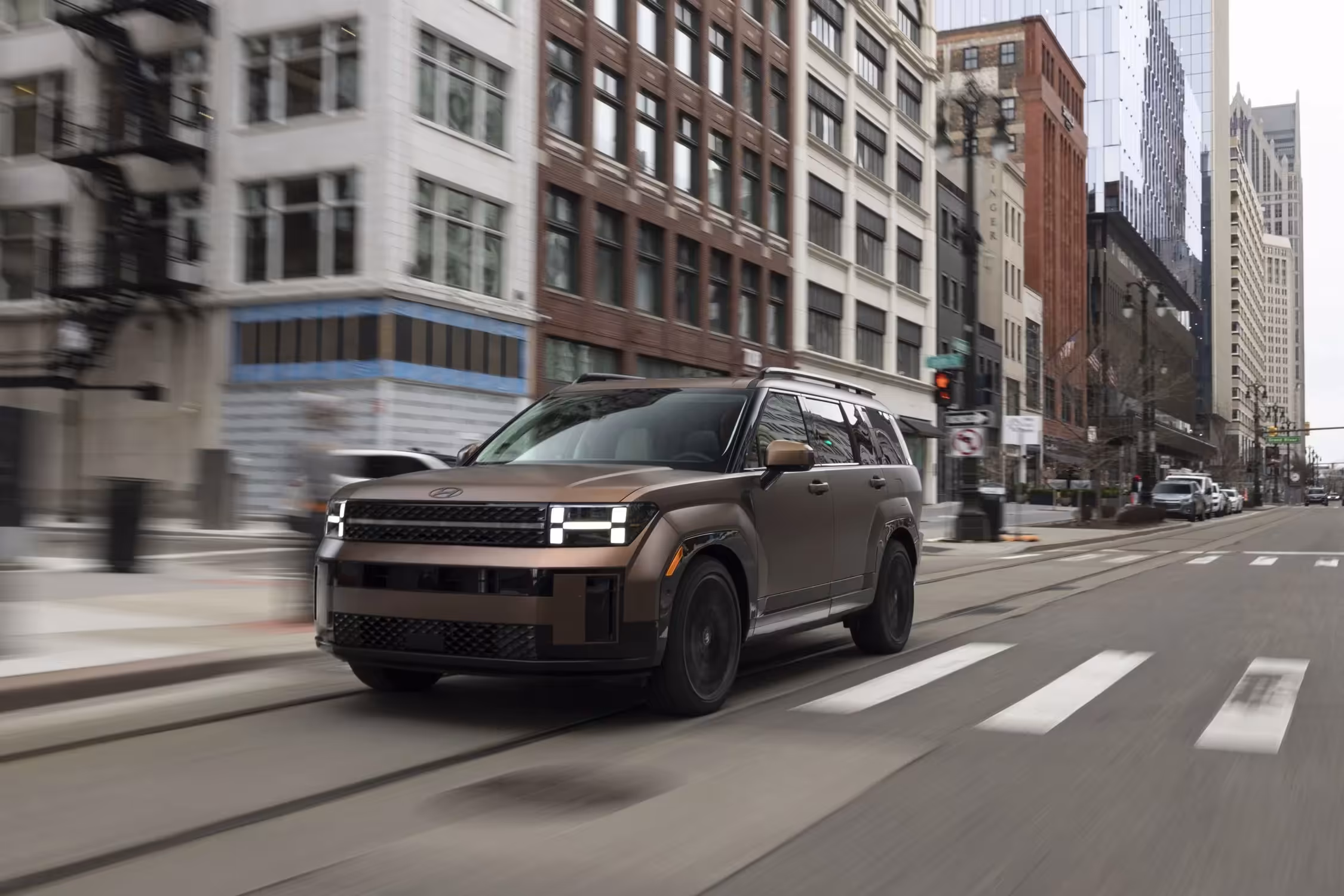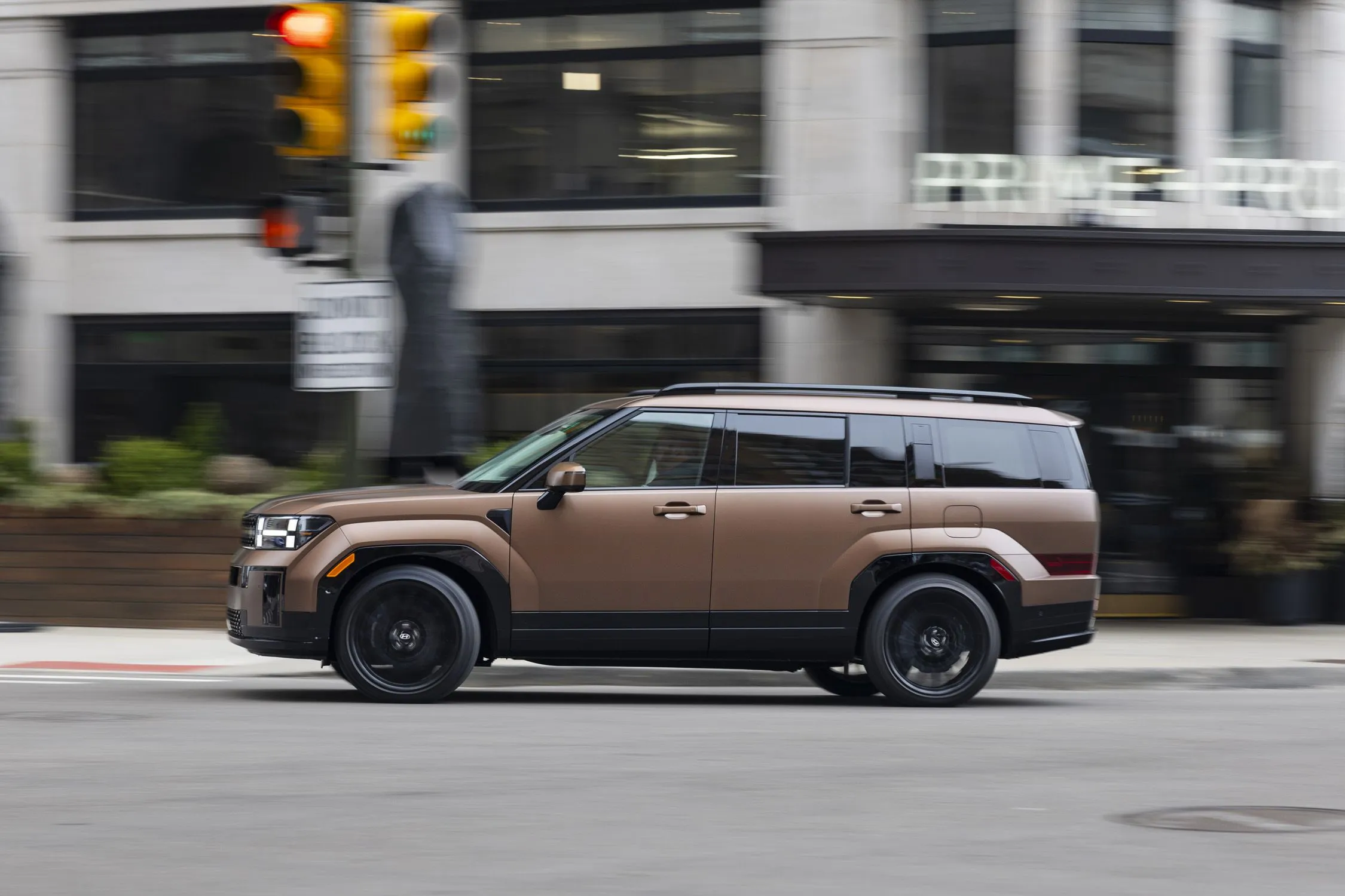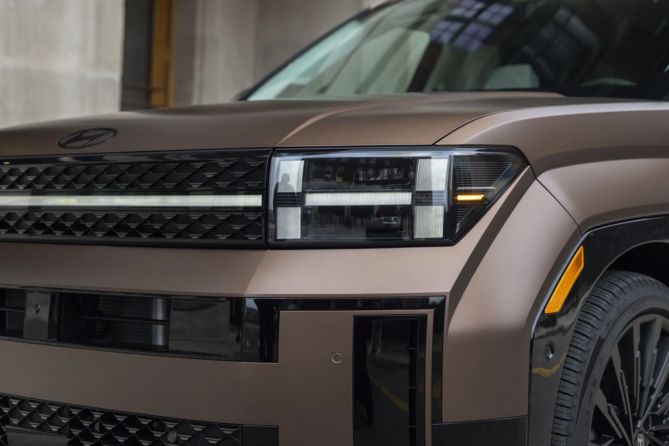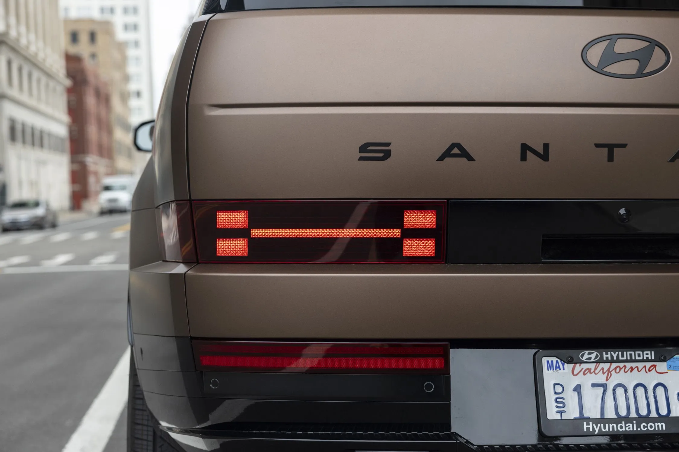 No se puede negar: el diseño del Hyundai Santa Fe 2025 es el tema del momento. Hyundai ha lanzado la cautela por la ventana y ha apostado por líneas rectas, ángulos marcados y una parte frontal imponente con faros en forma de «H». La inspiración en modelos como el Land Rover Defender es clara, buscando una imagen más robusta y aventurera.