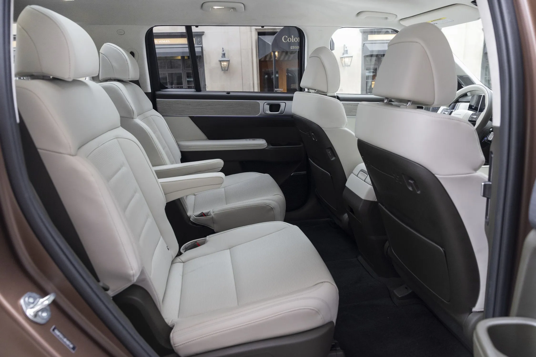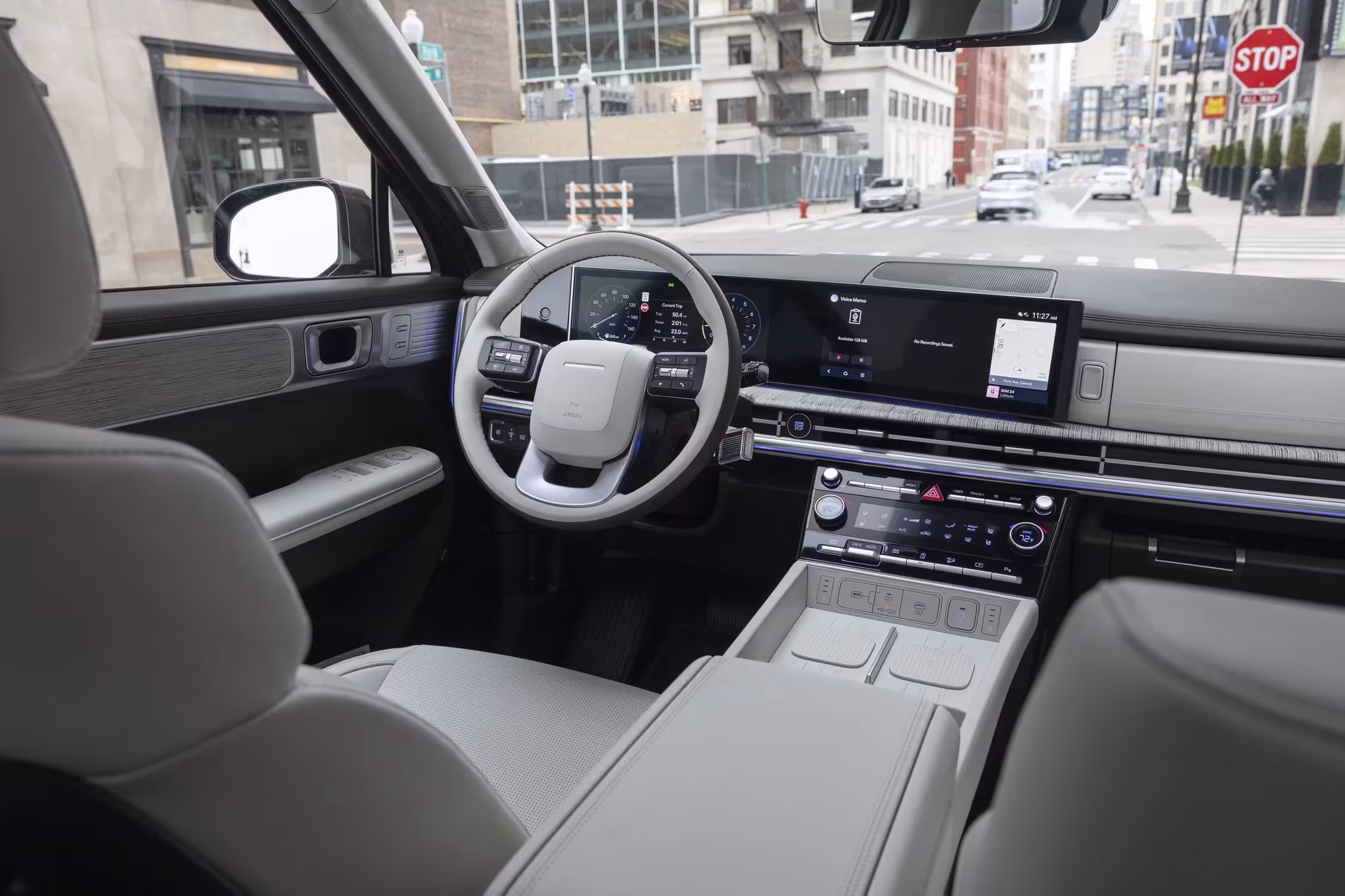 Una de las grandes promesas del Santa Fe 2025 es el aumento en el espacio interior. Gracias a un incremento en la distancia entre ejes (+5 cm) y en la longitud total (+4,5 cm), la cabina es más generosa. La tercera fila de asientos ahora es estándar en muchos mercados, lo que es un punto positivo para familias más grandes.