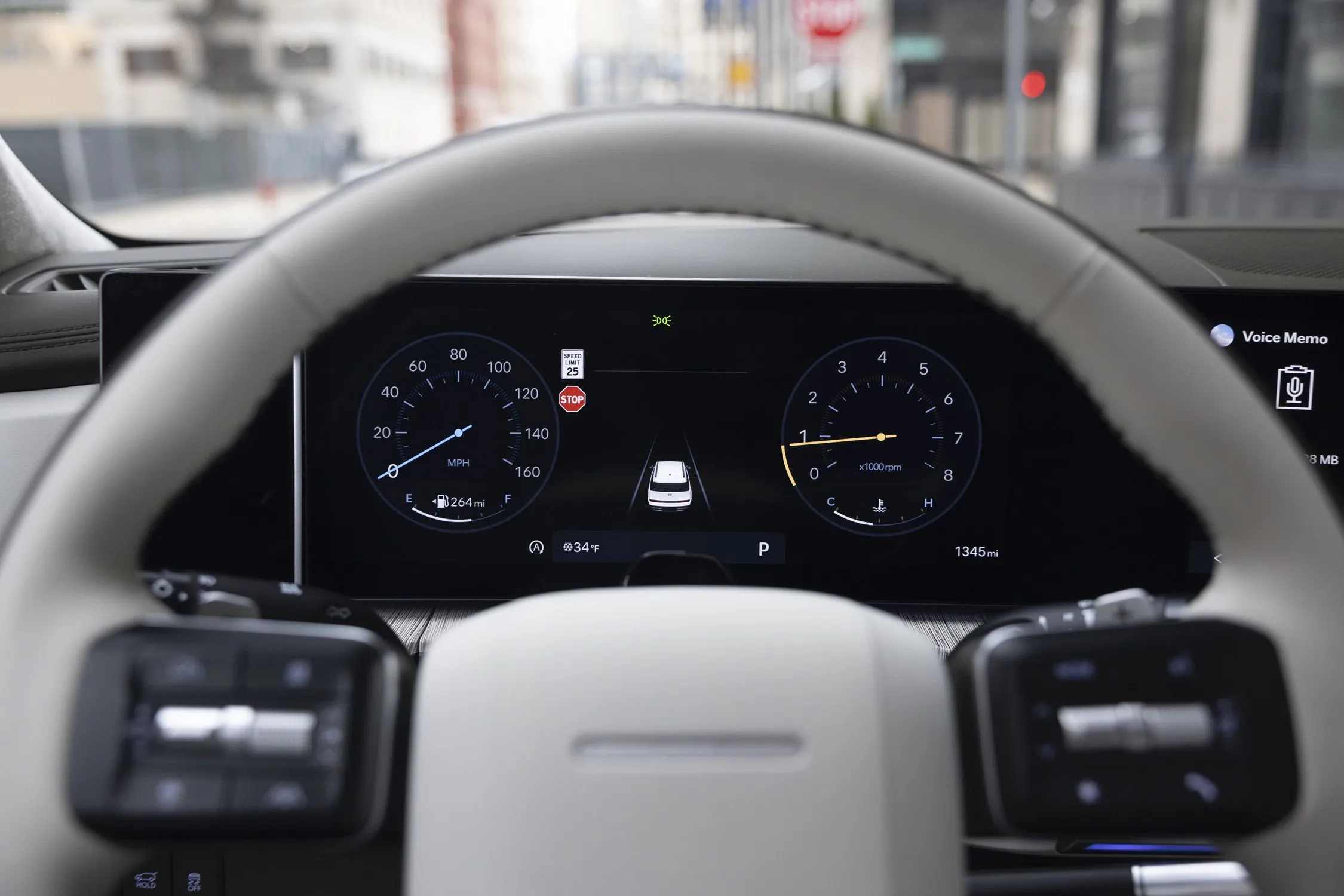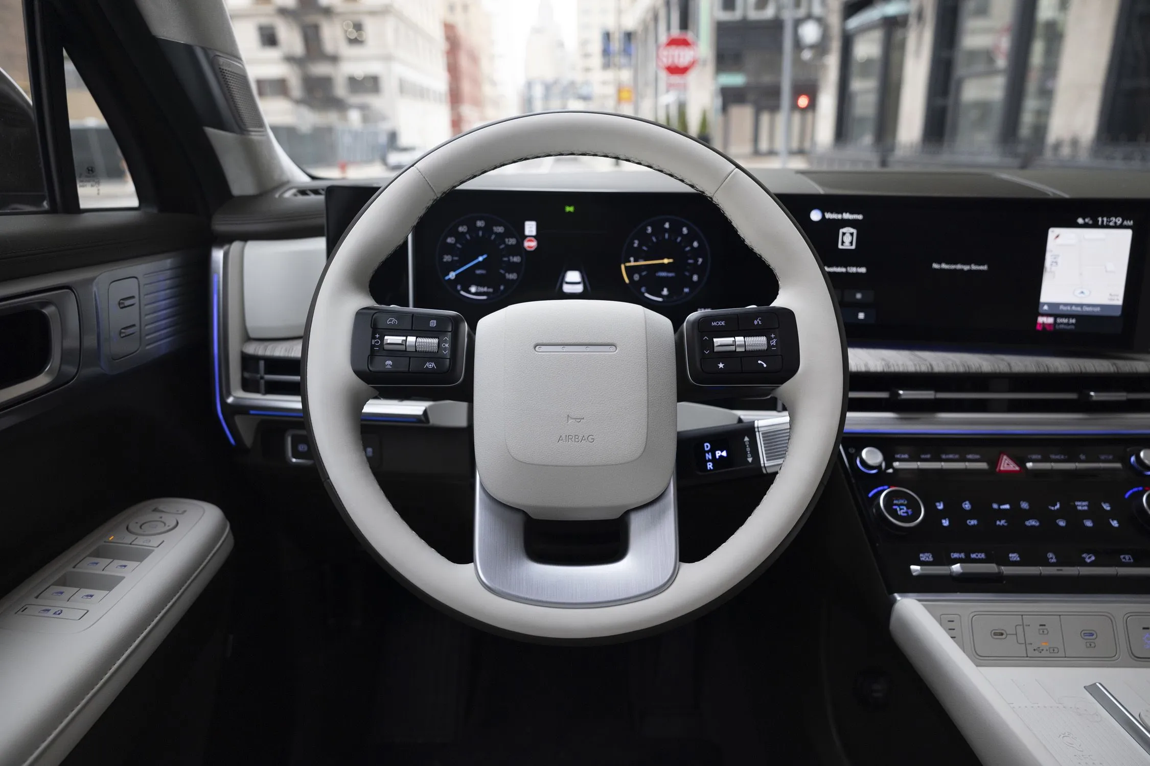 Por dentro, el Santa Fe 2025 acepta la era digital con fuerza. El gran atractivo es el panel panorámico curvo que une dos pantallas de 12,3 pulgadas: una para el cuadro de instrumentos y otra para el sistema de multimedia. El diseño es moderno y limpio, aunque algunos pueden echar de menos más botones físicos (¡menos mal que se han mantenido los controles de clima y volumen!).