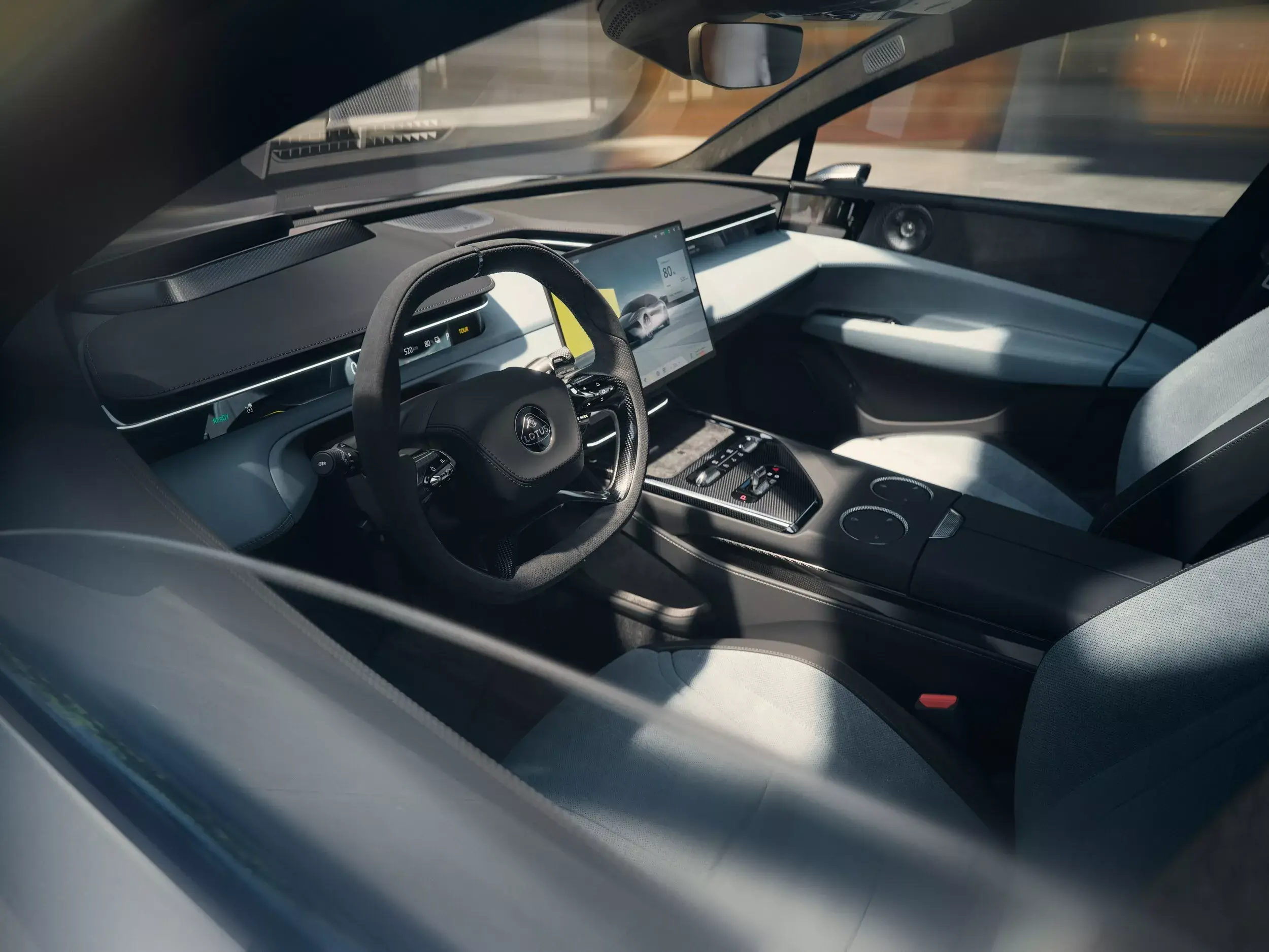 Por dentro, el Lotus Emeya 2025 combina lujo, tecnología y un toque de sostenibilidad. Los compradores pueden elegir entre una configuración de cuatro o cinco asientos. Los materiales impresionan: cuero Nappa, fibra de carbono y tejidos reciclados de fuentes sostenibles muestran una preocupación ambiental que va más allá de la propulsión eléctrica.