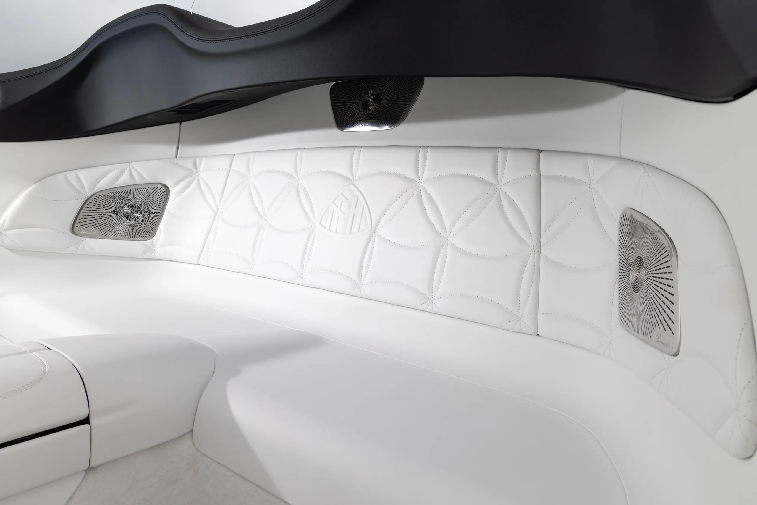 El interior es un santuario de lujo, comenzando con el concepto «White Ambiance»: una impresionante combinación de pintura Moonlight White Magno y detalles en Obsidian Black. Para aquellos que prefieren un toque más vibrante, también está disponible la opción «Red Ambiance» con Garnet Red y Obsidian Black. Y si la exclusividad es su lema, hay más de 50 colores personalizados para transformar la cabina en una extensión de su personalidad. Es una experiencia tan inmaculada que el conductor siente que debería ponerse un mono blanco y protectores de zapatos antes de entrar, para preservar la pureza del ambiente.
