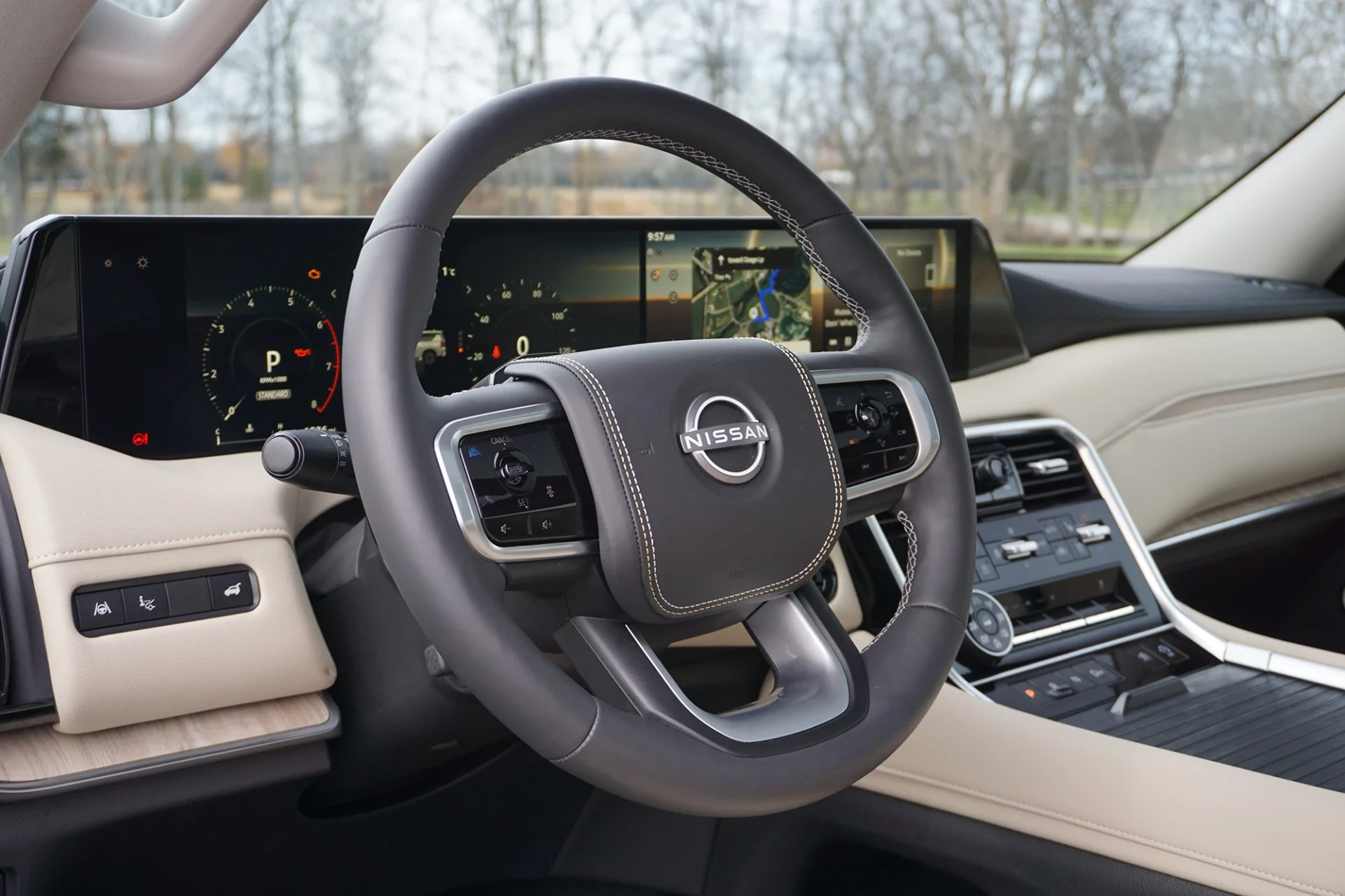 Además del motor, la transmisión también ha cambiado. Ahora cuenta con nueve velocidades, en lugar de las antiguas siete. Los cambios son más suaves y eficientes, proporcionando una conducción más placentera. ¡Y eso no es todo! La plataforma del Armada 2025 también es nueva, con mayor rigidez torsional, lo que se traduce en una mejor manejabilidad y más seguridad para ti y tu familia.