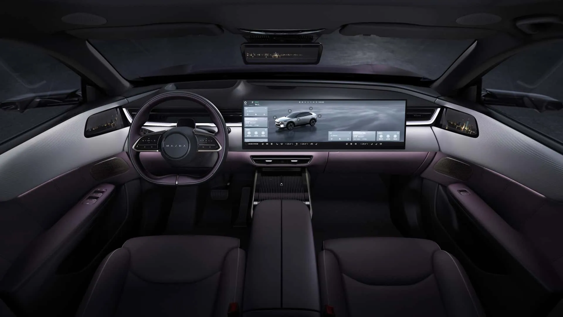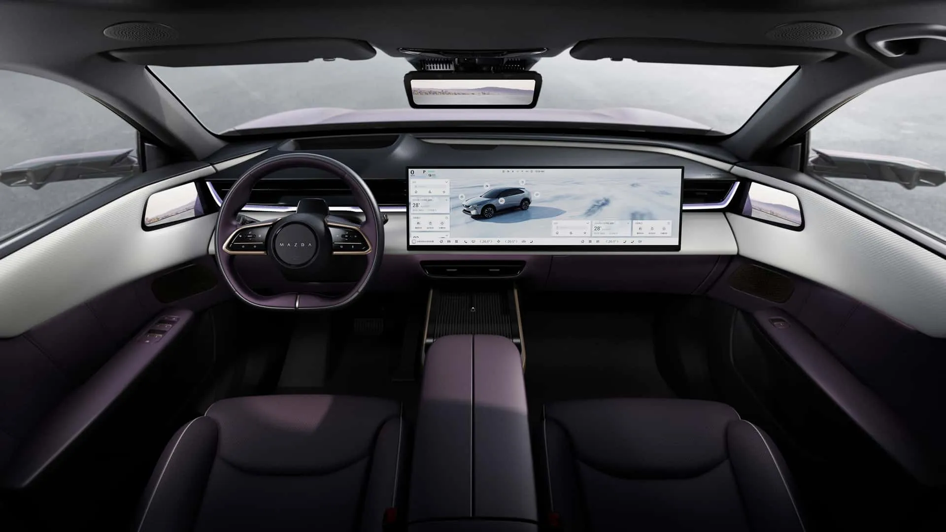 Detalles como la parrilla frontal con entrada de aire funcional, manijas embutidas y un ducto de aire en el pilar D no son solo estéticos, sino que contribuyen a la eficiencia aerodinámica. El logotipo de Mazda iluminado añade un toque de modernidad. Una opción interesante, legalizada en China, son las cámaras laterales que reemplazan los espejos tradicionales, reduciendo aún más la resistencia. El brillante color púrpura, heredado del Arata, promete llamar la atención.