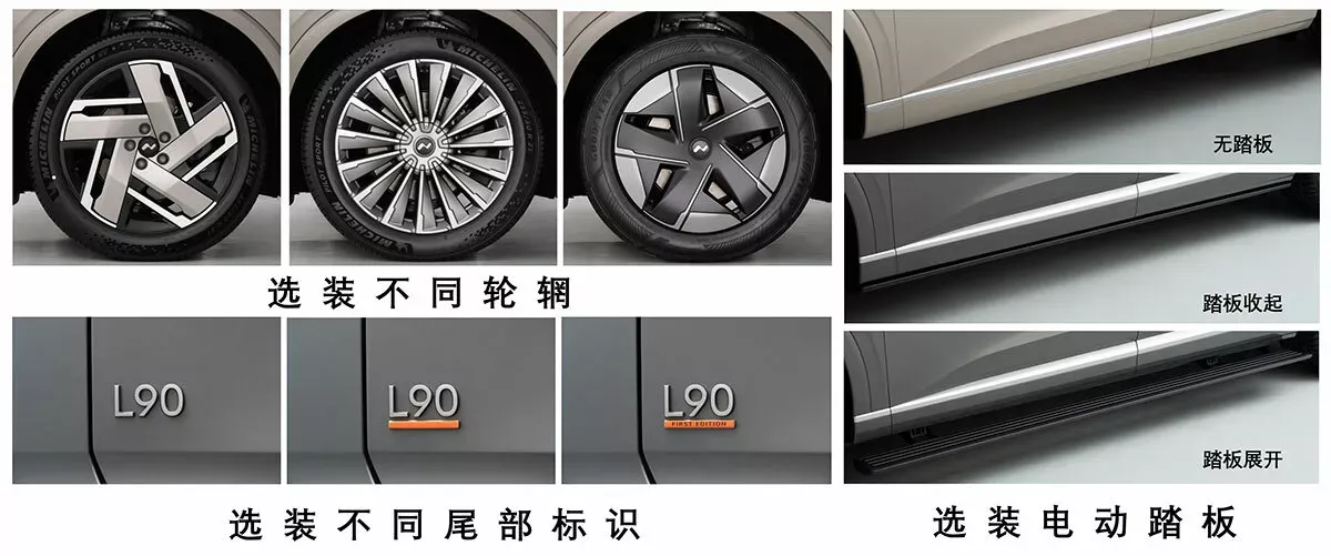 Esta es la puerta de entrada al L90. Con un motor trasero de 340 kW (456 cv), se enfoca en la eficiencia y la mayor autonomía (CLTC) estimada en ~730 km con batería NMC. El precio estimado ronda los 300.000 CNY, aproximadamente 42.000 USD.