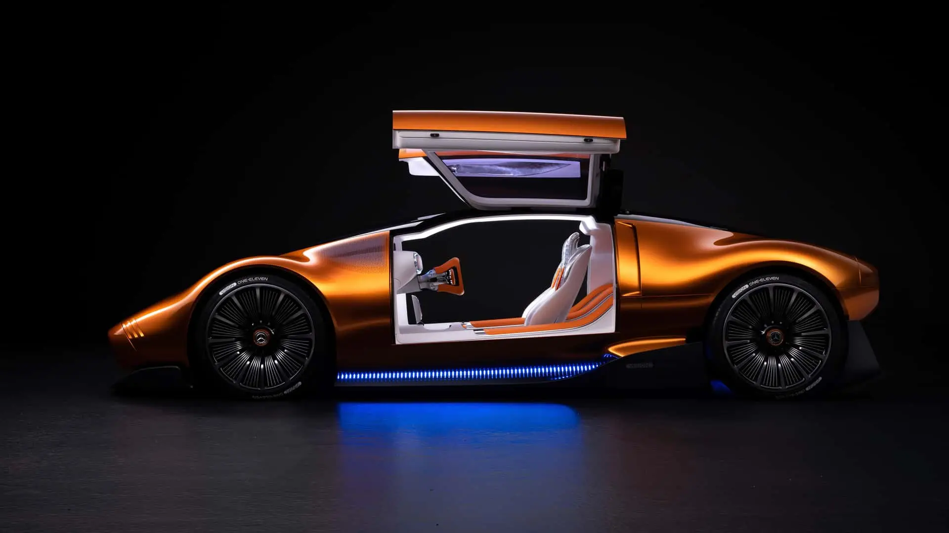 El diseño del supercoche eléctrico conceptual se señala como inspirado en el Vision One-Eleven, un prototipo presentado por Mercedes-Benz que, a su vez, rinde homenaje a los icónicos prototipos experimentales C111 de la década de 1970. Esta referencia al pasado, combinada con una visión futurista, sugiere una estética audaz e innovadora para el nuevo supercoche AMG. El Vision One-Eleven ya indicaba un camino de diseño que equilibra elementos retro con proporciones y detalles modernos, creando un lenguaje visual único e impactante.