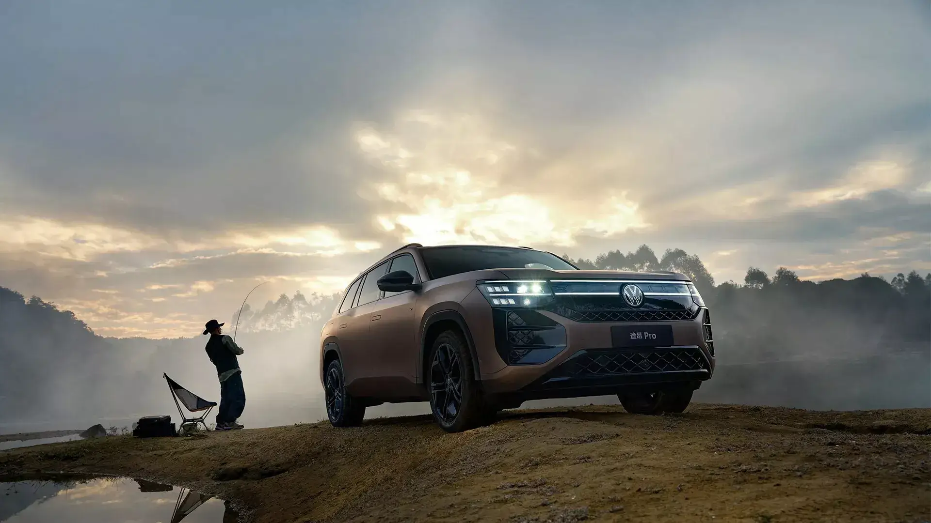 El Teramont Pro presenta un diseño exterior que evidencia el nuevo lenguaje estético de Volkswagen. Con una apariencia audaz, el vehículo ostenta una parrilla frontal completamente cerrada, que confiere un aspecto robusto y moderno. Los faros grandes, junto con la barra de luz pixelada en la parte trasera, crean una identidad visual distintiva, capaz de transmitir dinamismo incluso en movimiento.