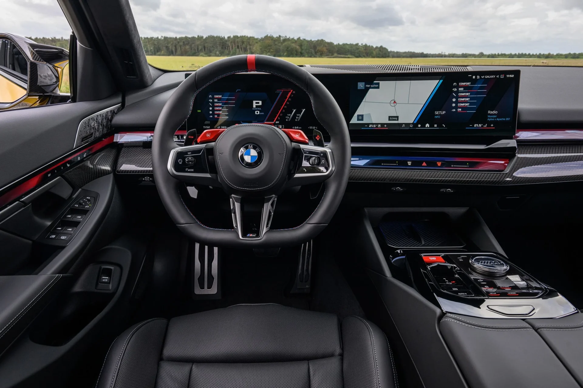 En parlant de technologies, il est impossible de ne pas mentionner le système de traction intégrale M xDrive et les différents modes de conduite disponibles. La voiture permet une personnalisation incroyable de l’expérience de conduite, avec des modes allant de Comfort à Sport Plus. En conditions normales, la M5 fonctionne avec une configuration de base AWD, mais vous pouvez facilement passer à une configuration avec un biais vers la traction arrière, rendant la conduite encore plus excitante.