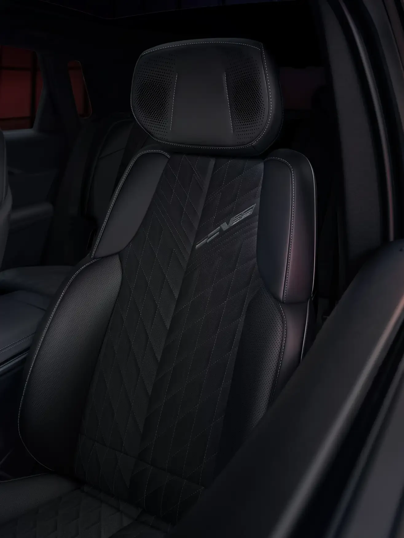 Le Lyriq-V arbore un design qui allie élégance et agressivité. Les faces avant et arrière exclusives, les jupes latérales, les détails couleur carrosserie et les jantes de 22 pouces soulignent l’identité « V ». La couleur Magnus Metal Frost, un gris satiné exclusif, confère au véhicule une allure encore plus distinctive.