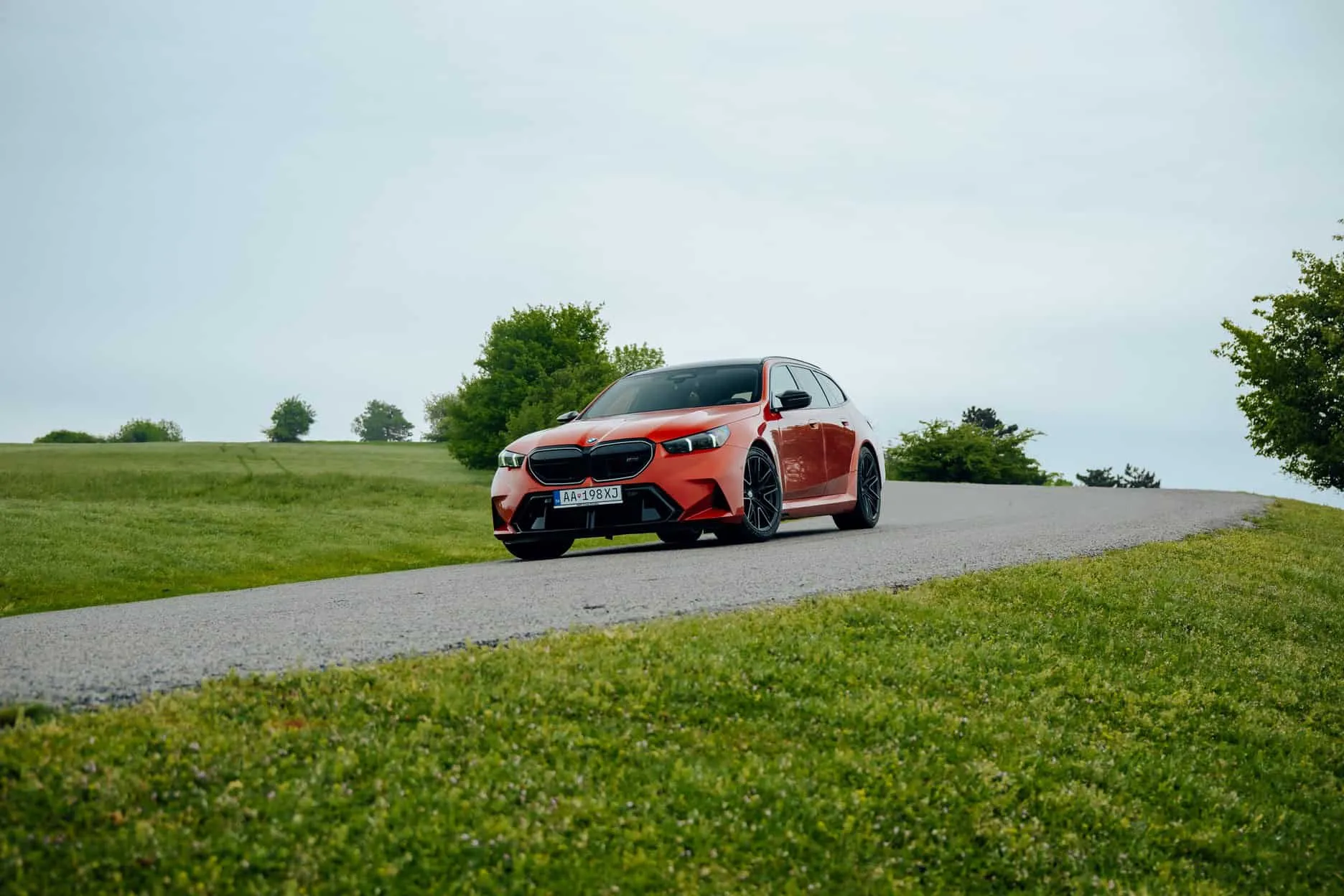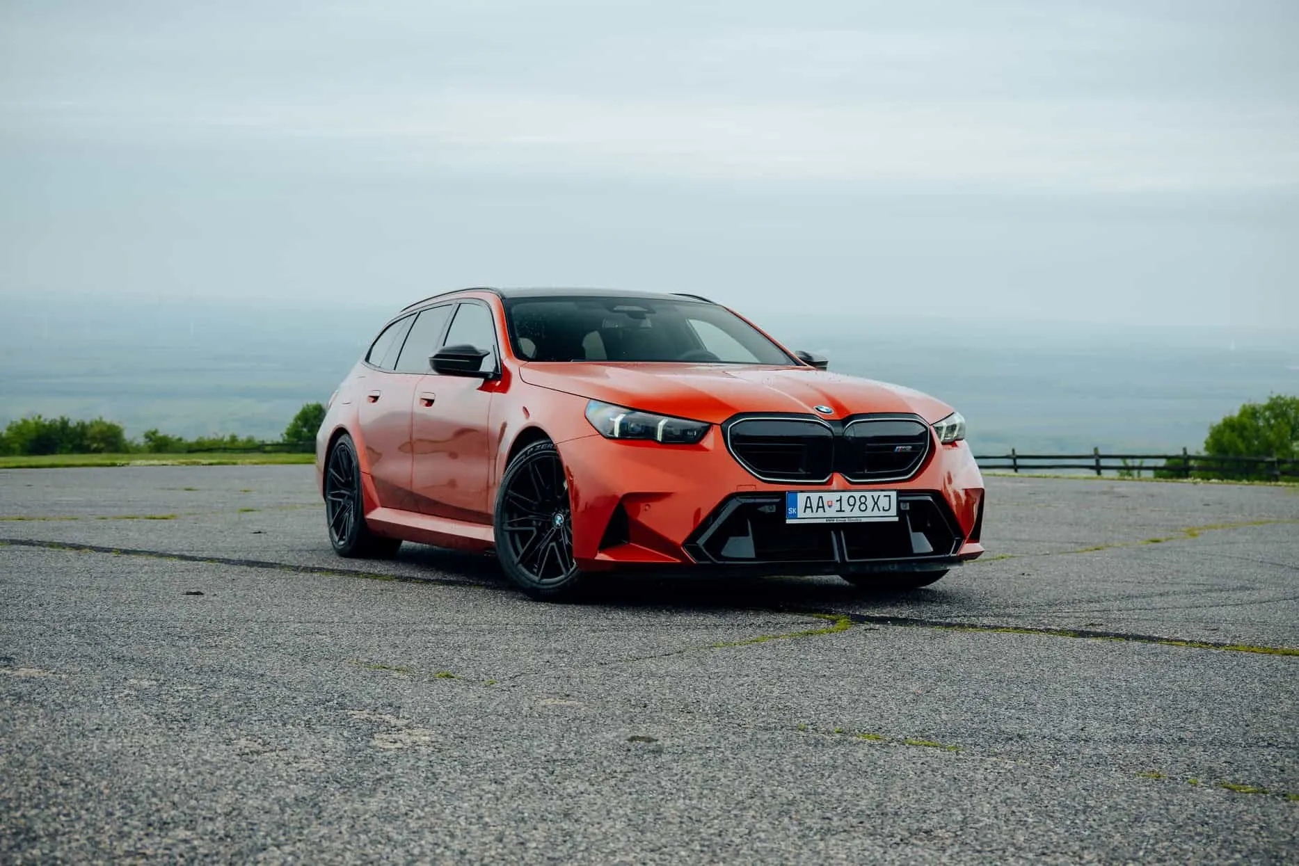 Mais la vraie magie opère quand la M5 Touring revêt une teinte Individual. Le Shakir Orange, une nuance vibrante et iconique pour la marque, existe depuis des années, mais j’avoue ne jamais l’avoir imaginée orner un break. Les nouvelles images officielles de BMW Slovaquie montrent la parfaite harmonie entre le G99 et le P93 (le code peinture Individual), créant un spectacle visuel qui défie la norme.