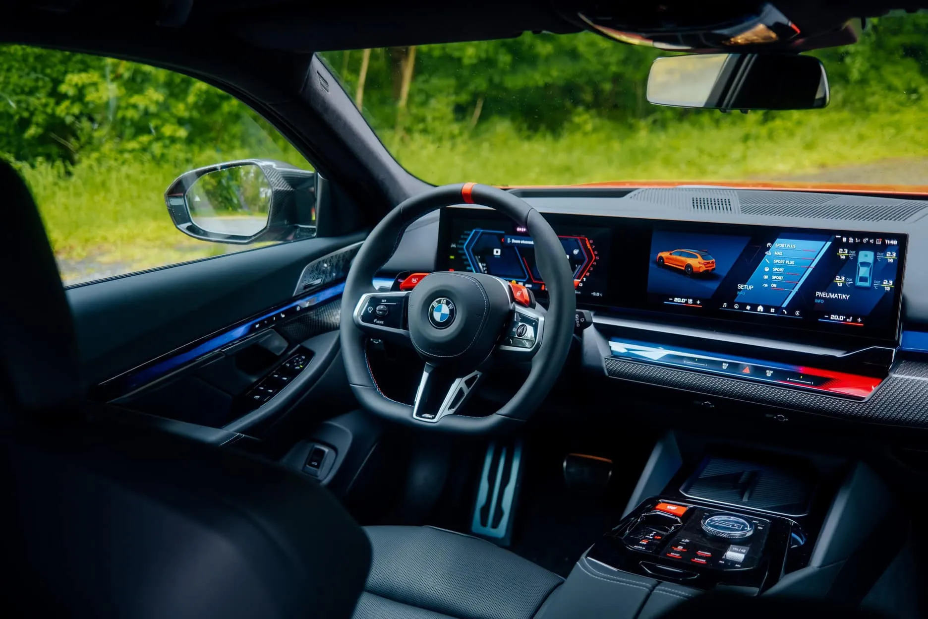 Autre point qui m’a intrigué : l’absence de toit optionnel en fibre de carbone. Alors que la M5 Sedan (G90) propose ce panneau léger, BMW a choisi de ne pas le proposer sur la Touring la plus « pratique ». Même configuration pour la M3 Touring (G81), où seul le berline (G80) bénéficie de l’option toit carbone. Un vrai dommage pour ceux qui recherchent une réduction maximale du poids et un look encore plus agressif.