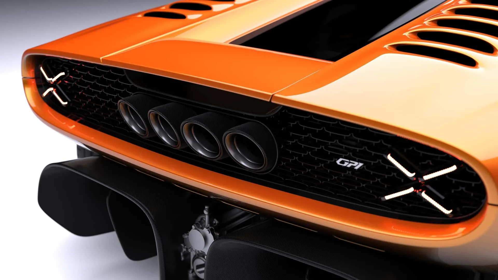 Signature angulaire, diffuseur colossal et quatre sorties d’échappement dominant la poupe. Le GP1 s’inspire de l’ère wedge, celle du « moins de volume, plus de tension dans la forme ». Vous voulez une analyse historique bien expliquée de cette esthétique qui fait encore la mode ? La revue de l’ère wedge par Hagerty est un bon point de départ : The Wedge Era.