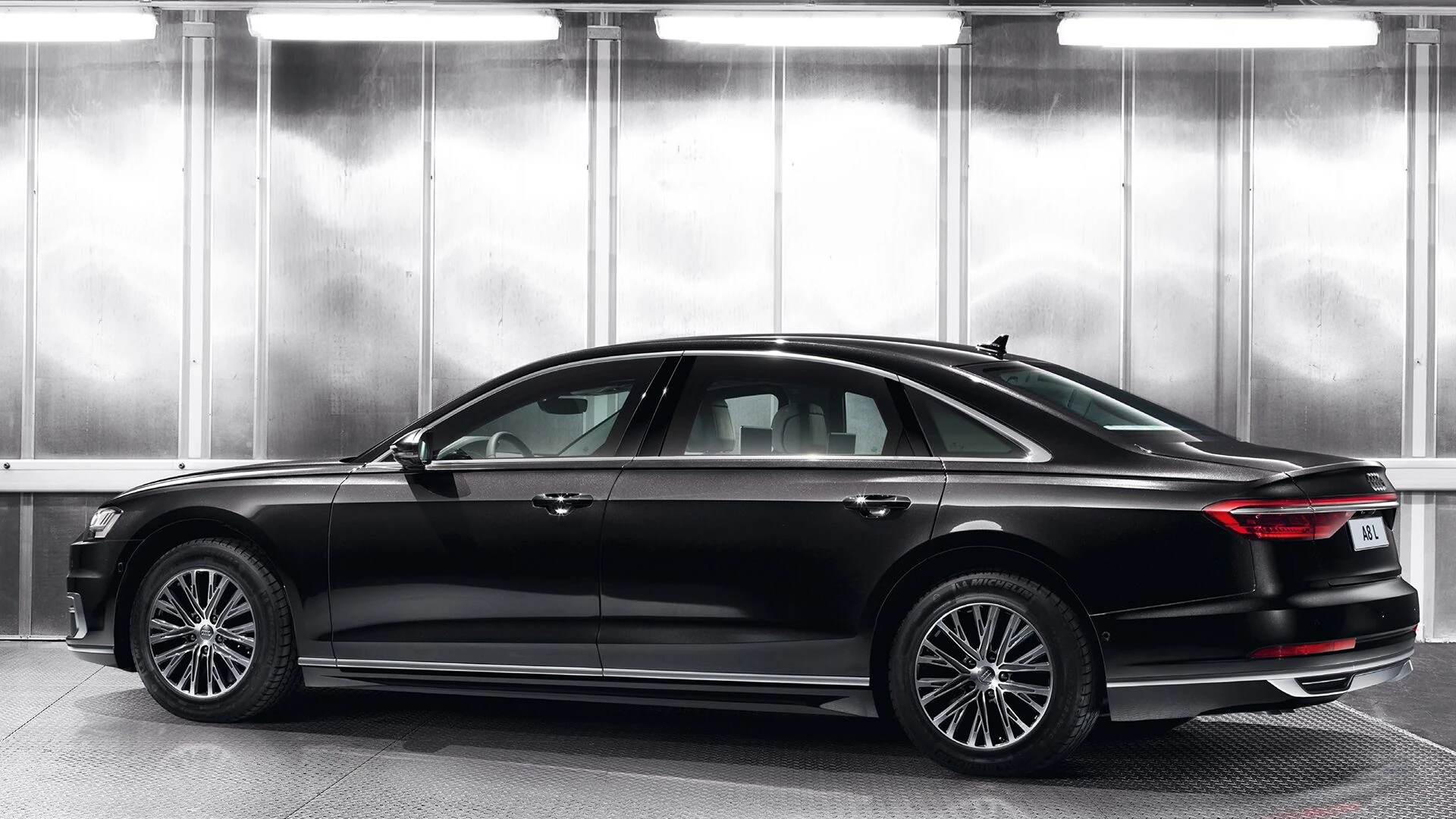 L’Audi A8 L Security impressionne par sa technologie de pointe, incluant un système d’oxygène d’urgence et des pneus run-flat.