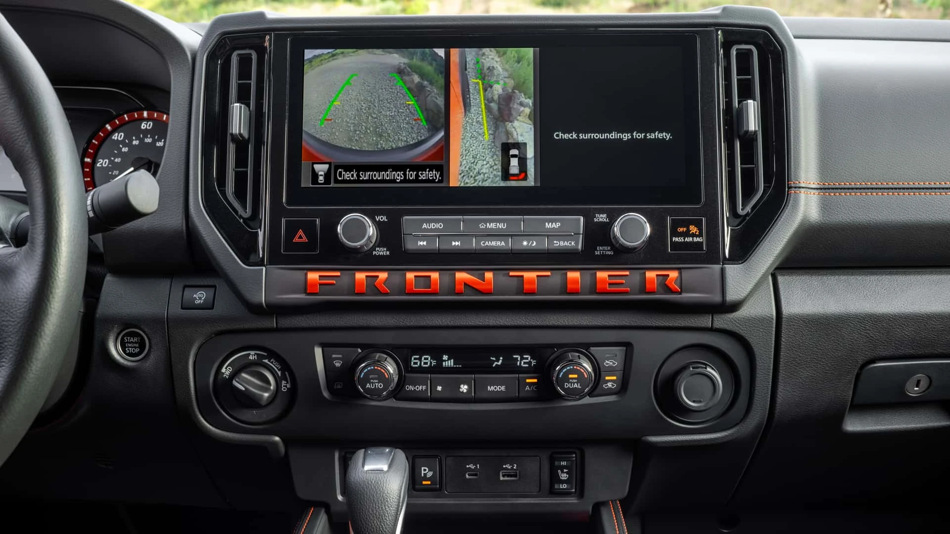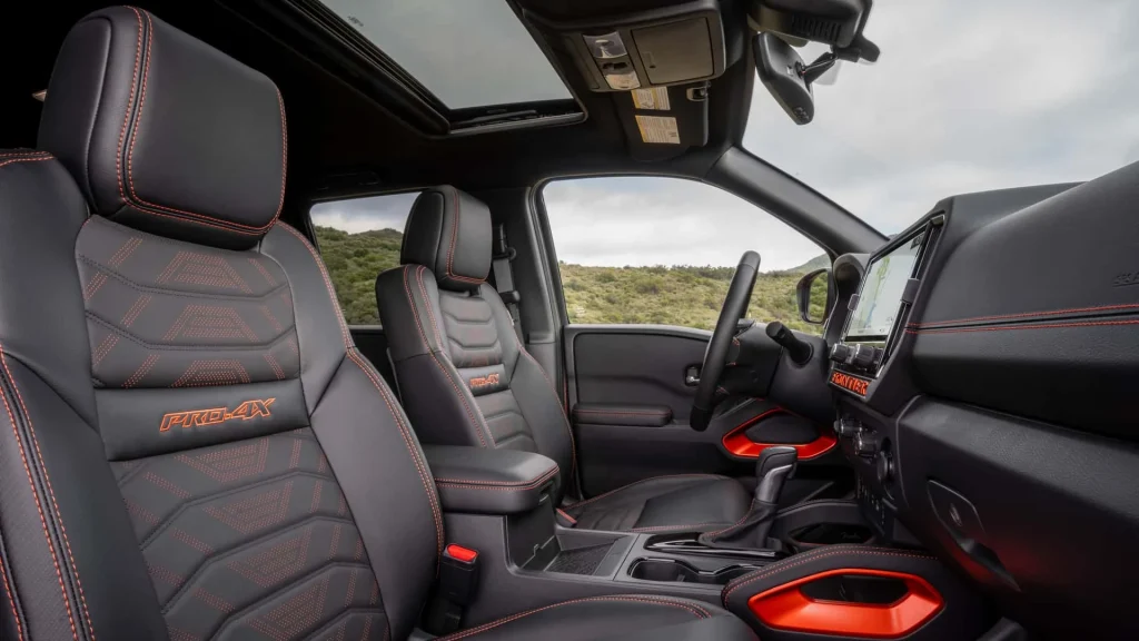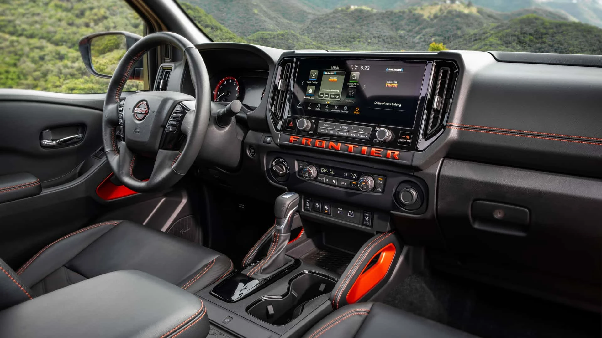 Lorsque nous entrons dans la Nissan Frontier 2025, la première impression est que Nissan a vraiment pensé au confort et à la praticité. Le tableau de bord a été totalement repensé, et les sorties de ventilation sont mieux optimisées. Cela signifie que l’air circule mieux, et vous ne souffrirez ni de la chaleur ni du froid pendant vos voyages. La partie centrale du tableau de bord a reçu une touche spéciale, et les finitions sont plus sophistiquées, ce qui, convenons-en, fait toute la différence lors de la conduite.
