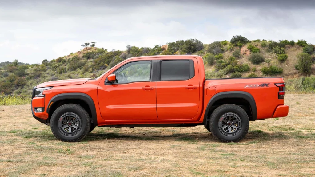 Parler du design de la Nissan Frontier 2025 est un plaisir, car elle a vraiment gagné un look très attrayant. La nouvelle calandre avant, plus rectangulaire, et les éléments en plastique sur le pare-chocs lui donnent une allure robuste qui attire l’attention sur la route. Les versions PRO-X et PRO-4X ont également un revêtement en plastique sur le couvercle de la benne, ce qui ajoute une touche spéciale. Et pour ceux qui aiment la personnalisation, une nouvelle couleur orange, appelée Afterburn Orange, a été ajoutée à la palette, apportant une fraîcheur au look.