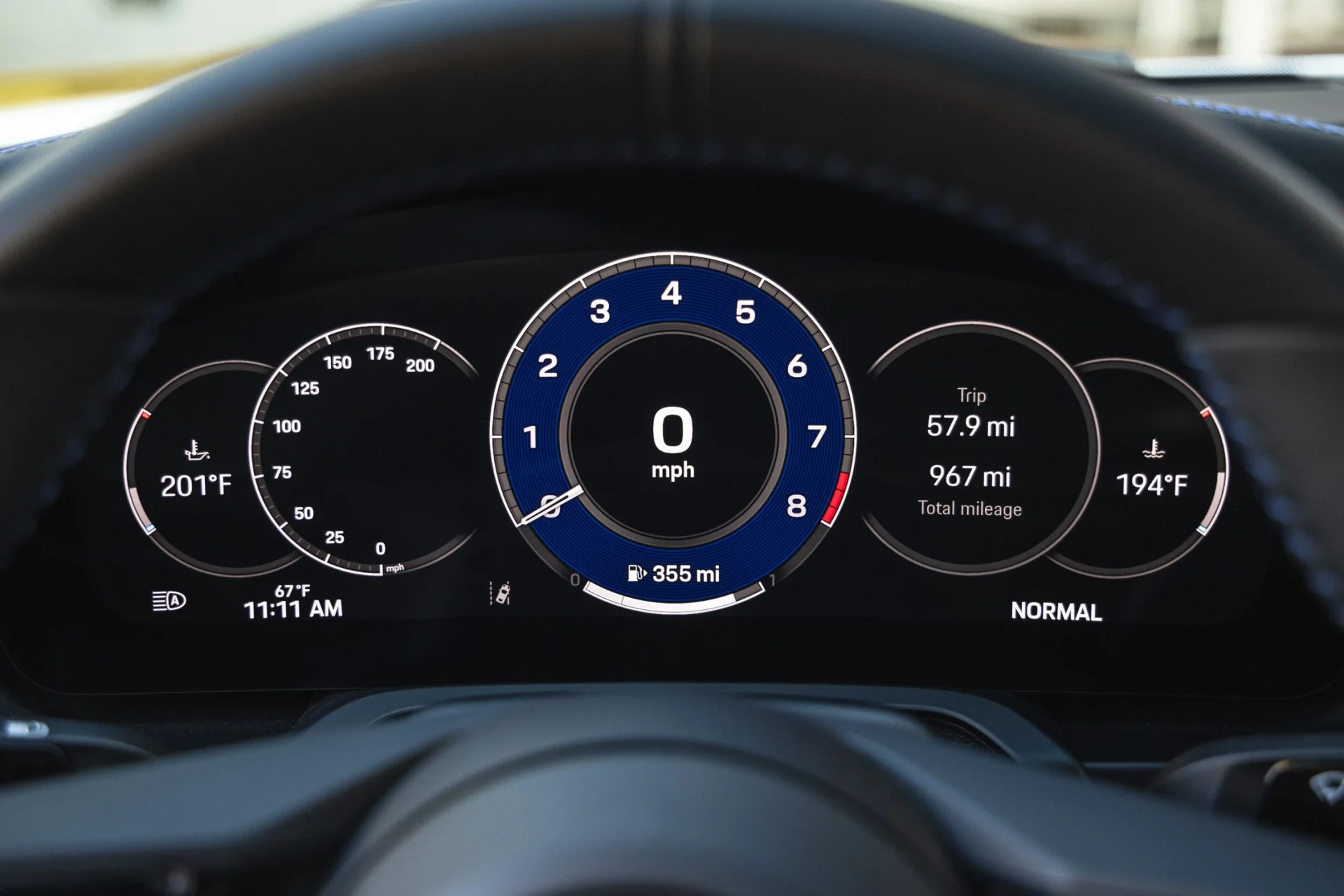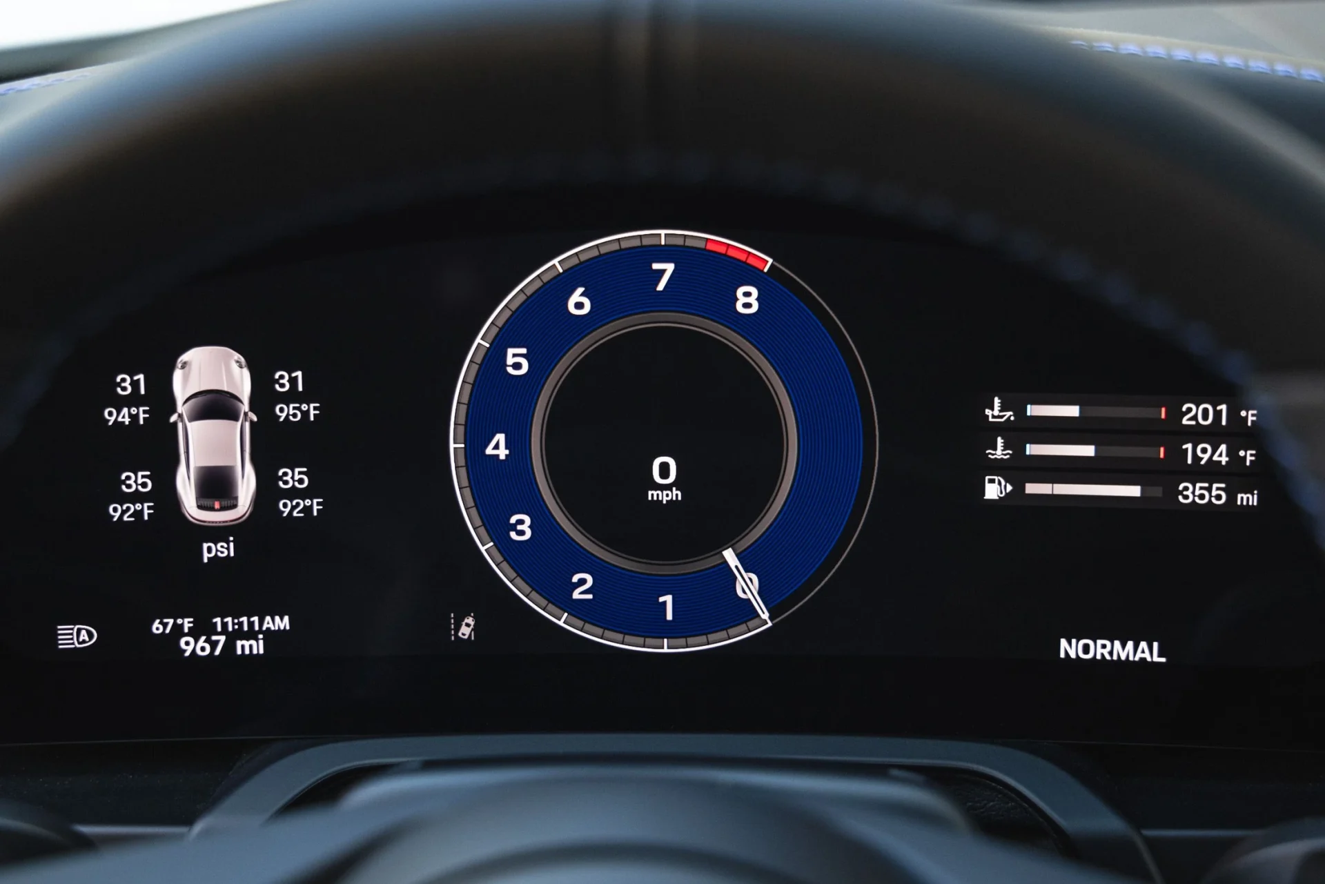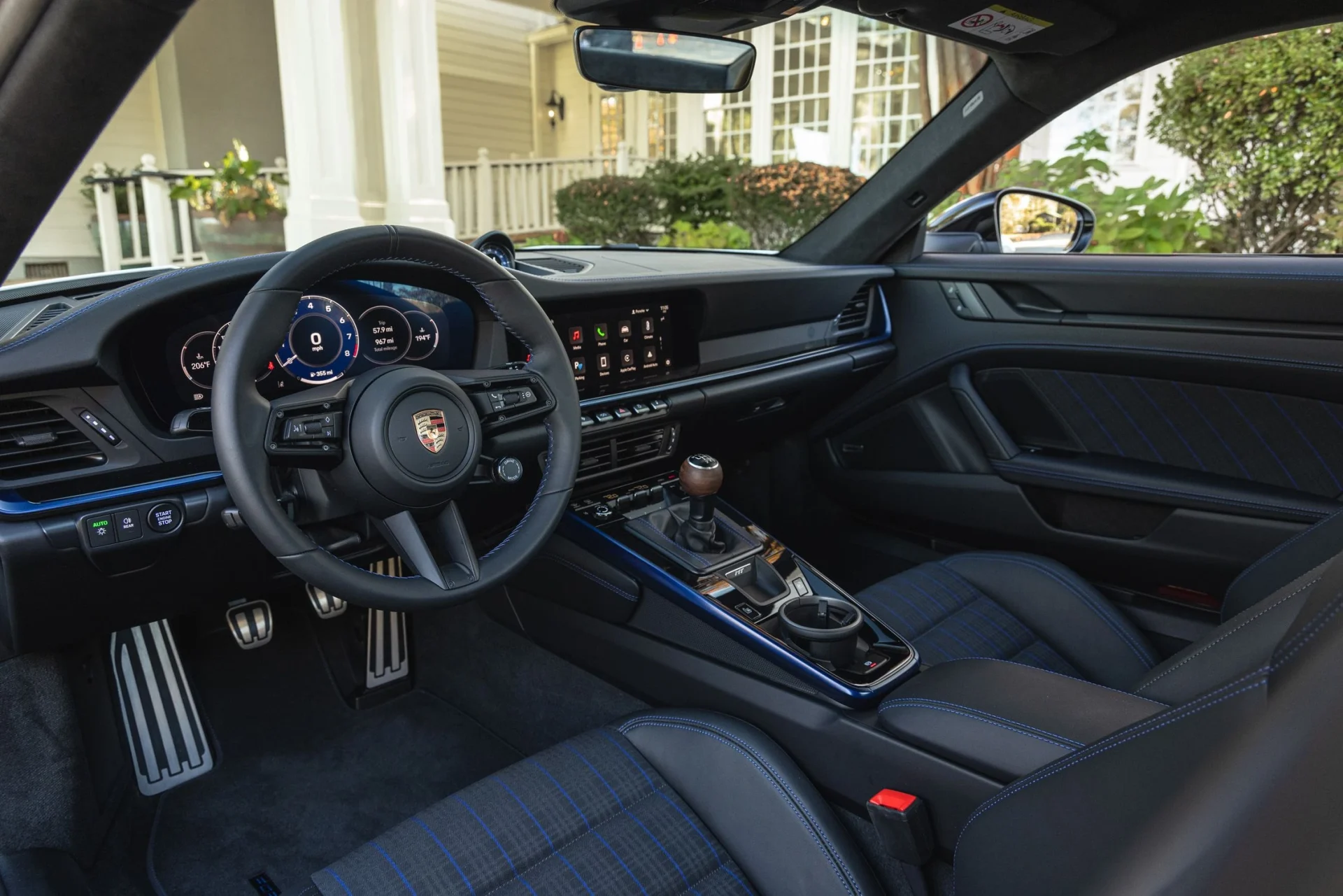 L’adoption de la transmission manuelle à six vitesses est l’un des changements les plus notables dans le Carrera T 2025. Ce choix n’est pas seulement une question de nostalgie, mais une tentative délibérée de fournir une conduite plus engageante. En partageant les six premières relations avec la boîte de vitesses à sept rapports du modèle précédent, Porsche garantit que les changements de vitesse sont précis et intuitifs. Ah, et il y a même un autocollant sur la lunette arrière montrant le schéma de changement, un charme !