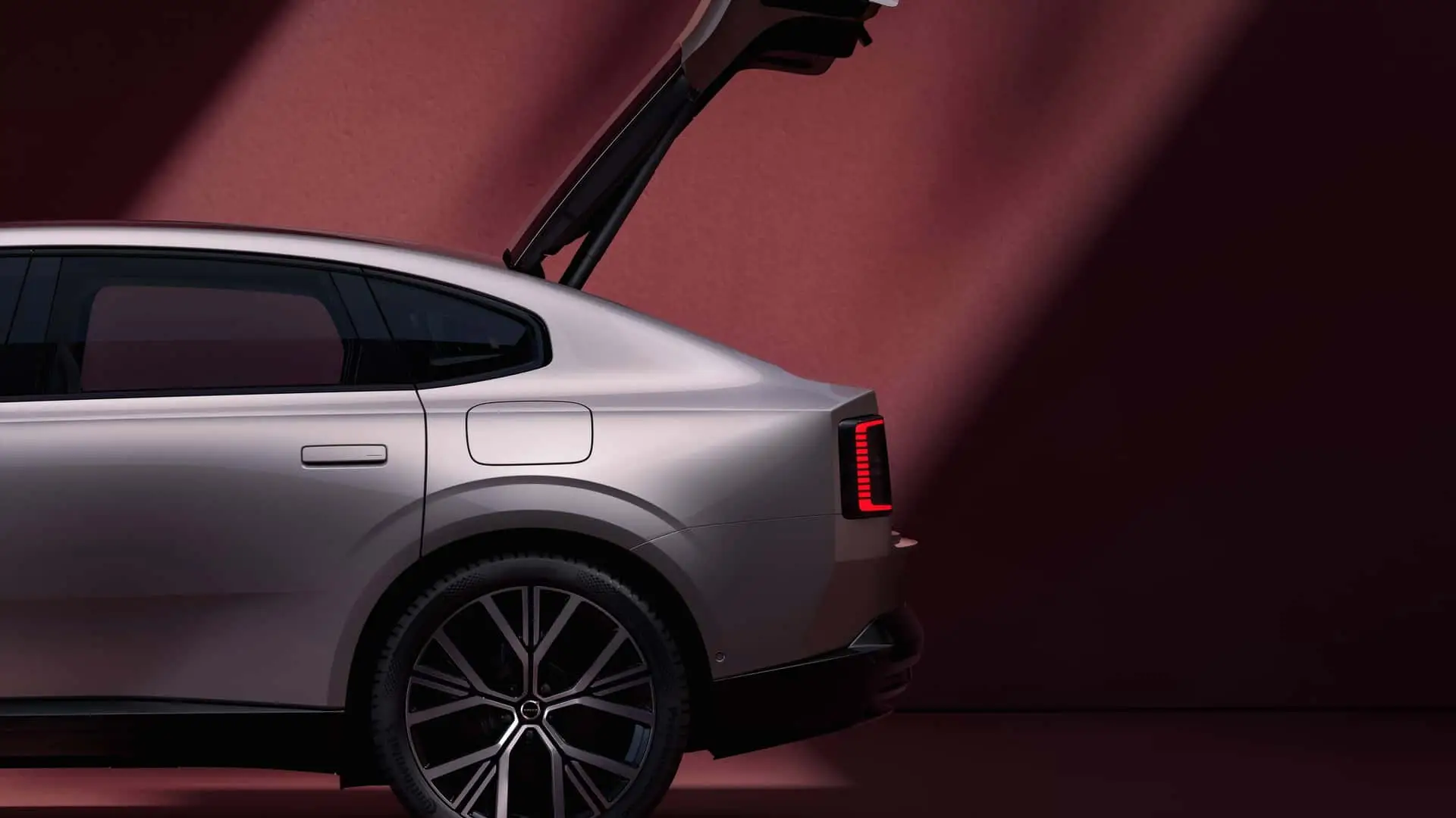 À l’arrière, le ES90 complète le design audacieux avec des feux divisés en clusters en forme de « C » et des bandes verticales sur les côtés du verre arrière. Cette combinaison d’éléments visuels crée une identité lumineuse unique et marquante, renforçant la modernité et la sophistication du véhicule. Le design liftback, en plus d’ajouter de la valeur esthétique, permet une large ouverture du coffre, facilitant le chargement et le déchargement d’objets volumineux. Volvo a parfaitement réussi à allier beauté et fonctionnalité dans le design du ES90, créant une berline électrique qui attire les regards et offre des solutions pratiques au quotidien.