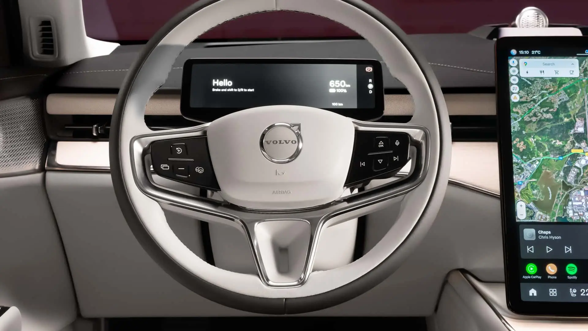À l’intérieur, le ES90 offre une expérience technologique immersive et intuitive. L’écran central d’infodivertissement de 14,5 pouces regroupe les commandes du véhicule et permet d’accéder à diverses applications et fonctionnalités. Le tableau de bord numérique de 9 pouces et l’affichage tête haute fournissent des informations essentielles au conducteur de manière claire et concise. Le système d’infodivertissement, alimenté par la plateforme Qualcomm Cockpit, intègre Google Maps, Google Assistant et Google Play, avec connectivité 5G, garantissant une expérience connectée et à jour. L’architecture du ES90 utilise des puces Nvidia Drive AGX Orin, offrant une capacité de calcul exceptionnelle pour traiter les données des capteurs et alimenter les systèmes de sécurité et d’assistance au conducteur. Volvo a vraiment élevé le niveau de la technologie embarquée dans le ES90, combinant sécurité, connectivité et divertissement de manière harmonieuse.