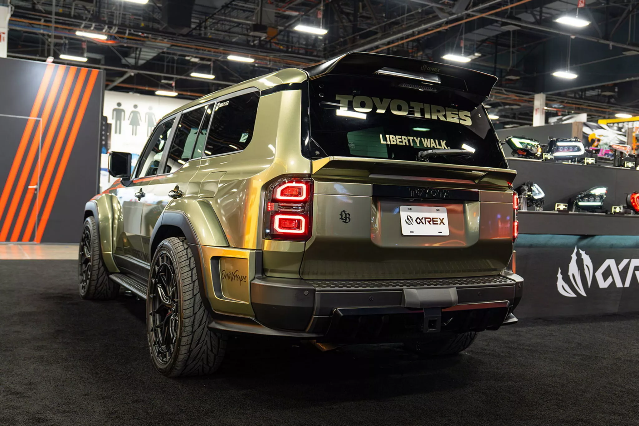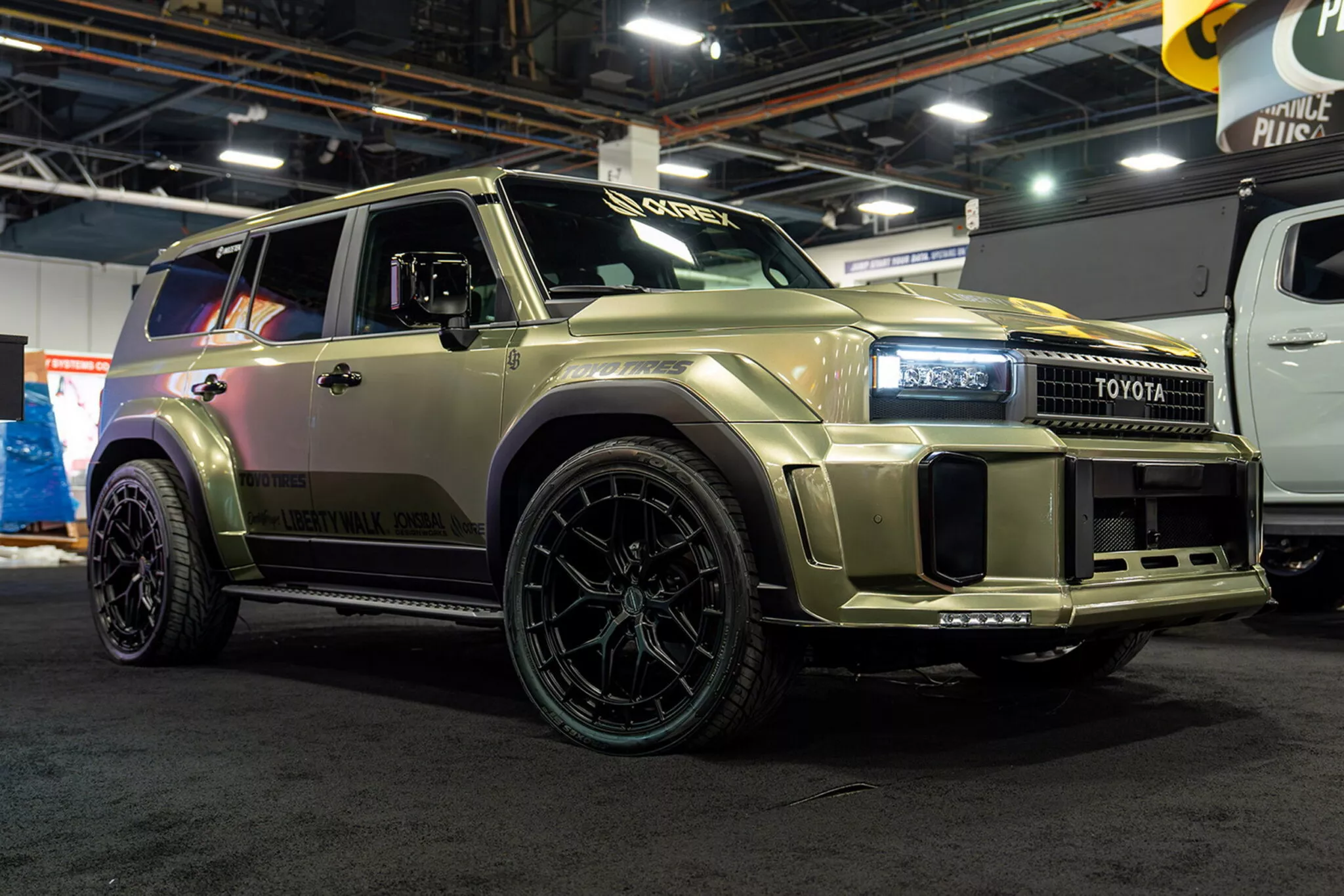 टोयोटा लैंड क्रूजर एसयूवी को एसईएमए (SEMA) में प्रभावशाली प्रदर्शन के साथ लिबर्टी वॉक (Liberty Walk) किट मिली है, जिसमें सुपरकार जैसी स्टाइलिंग है, लेकिन प्रदर्शन में वृद्धि के बिना।