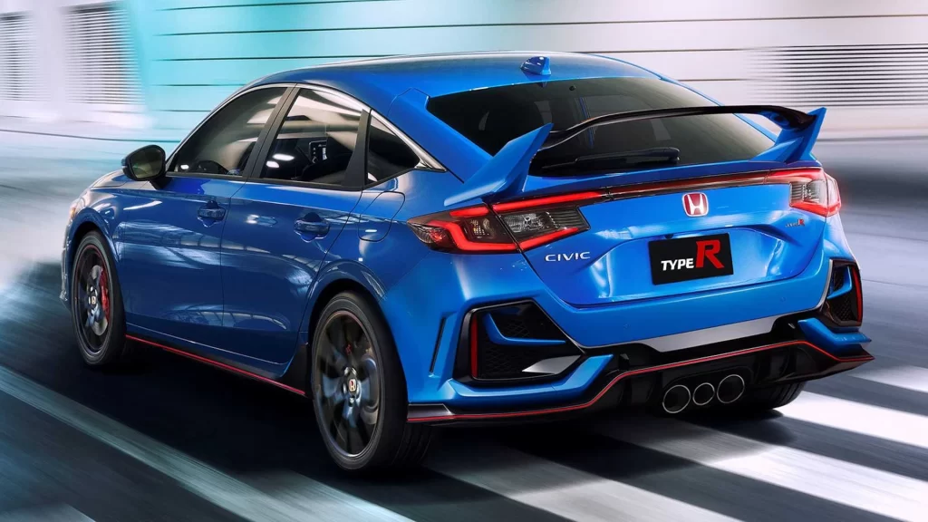 O novo Type R traz um design agressivo e aerodinâmico, com spoilers, saias laterais, difusor traseiro e uma grande asa que ajuda a manter a estabilidade em altas velocidades. O carro também conta com rodas de 20 polegadas, freios Brembo, suspensão adaptativa e três modos de condução: Comfort, Sport e +R.