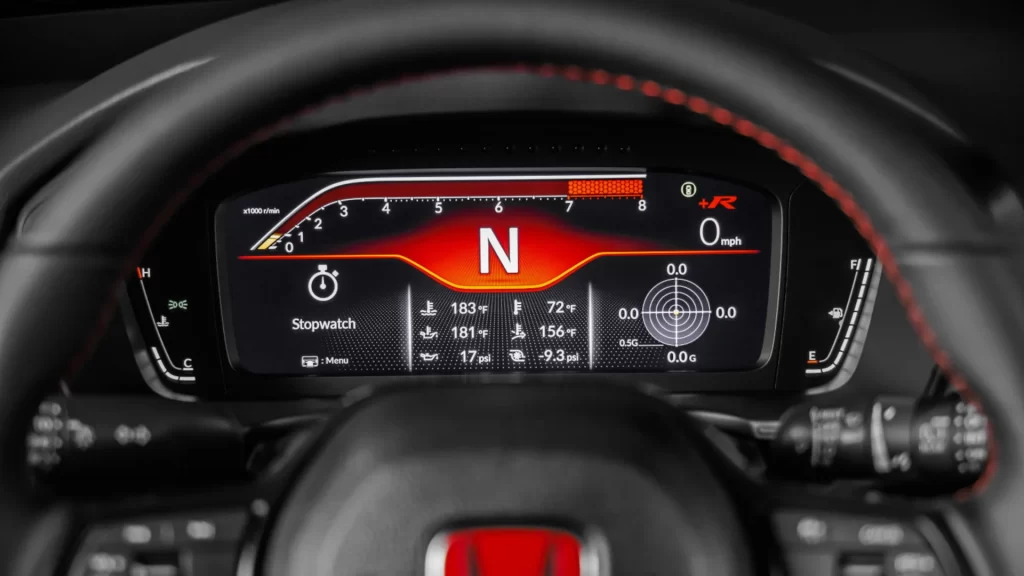 Por dentro, o Type R oferece um ambiente esportivo e confortável, com bancos concha, volante revestido em couro, painel digital e uma central multimídia com tela de 7 polegadas, compatível com Android Auto e Apple CarPlay. O carro também tem ar-condicionado digital, controle de cruzeiro adaptativo, assistente de permanência em faixa e frenagem automática de emergência.