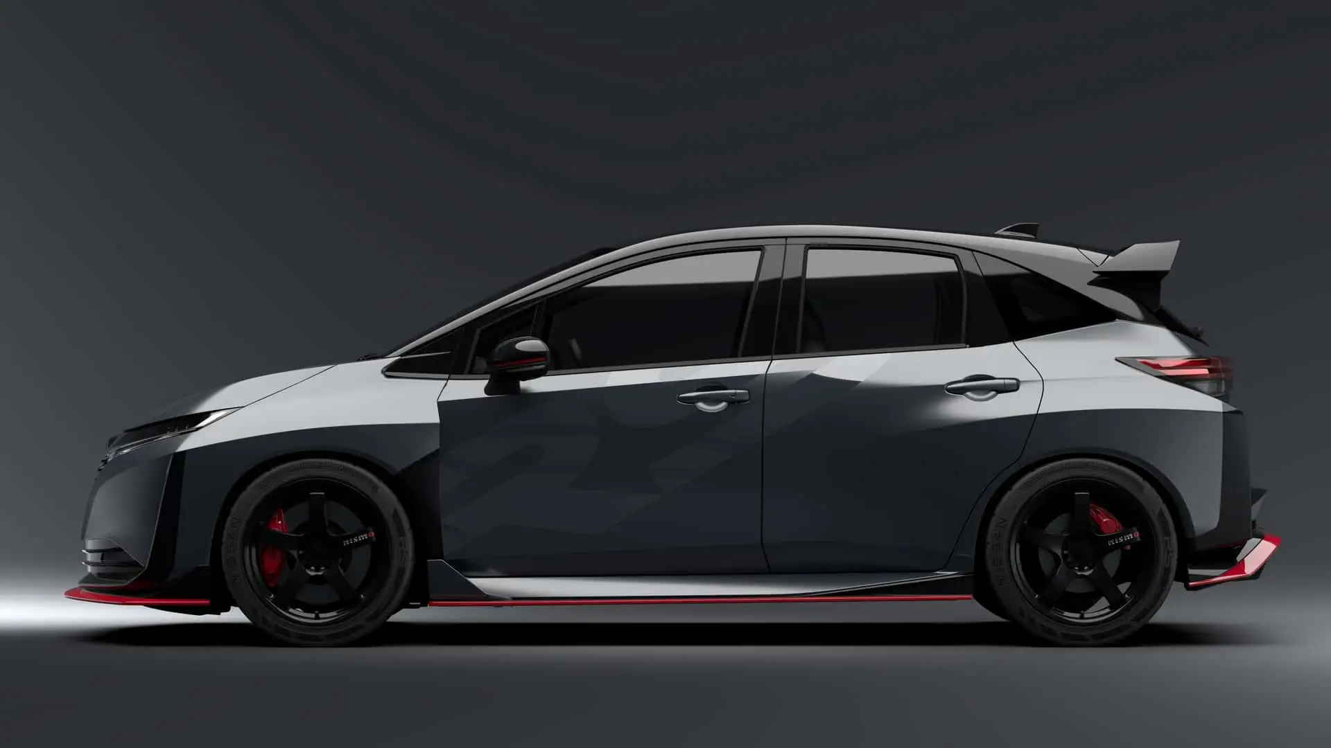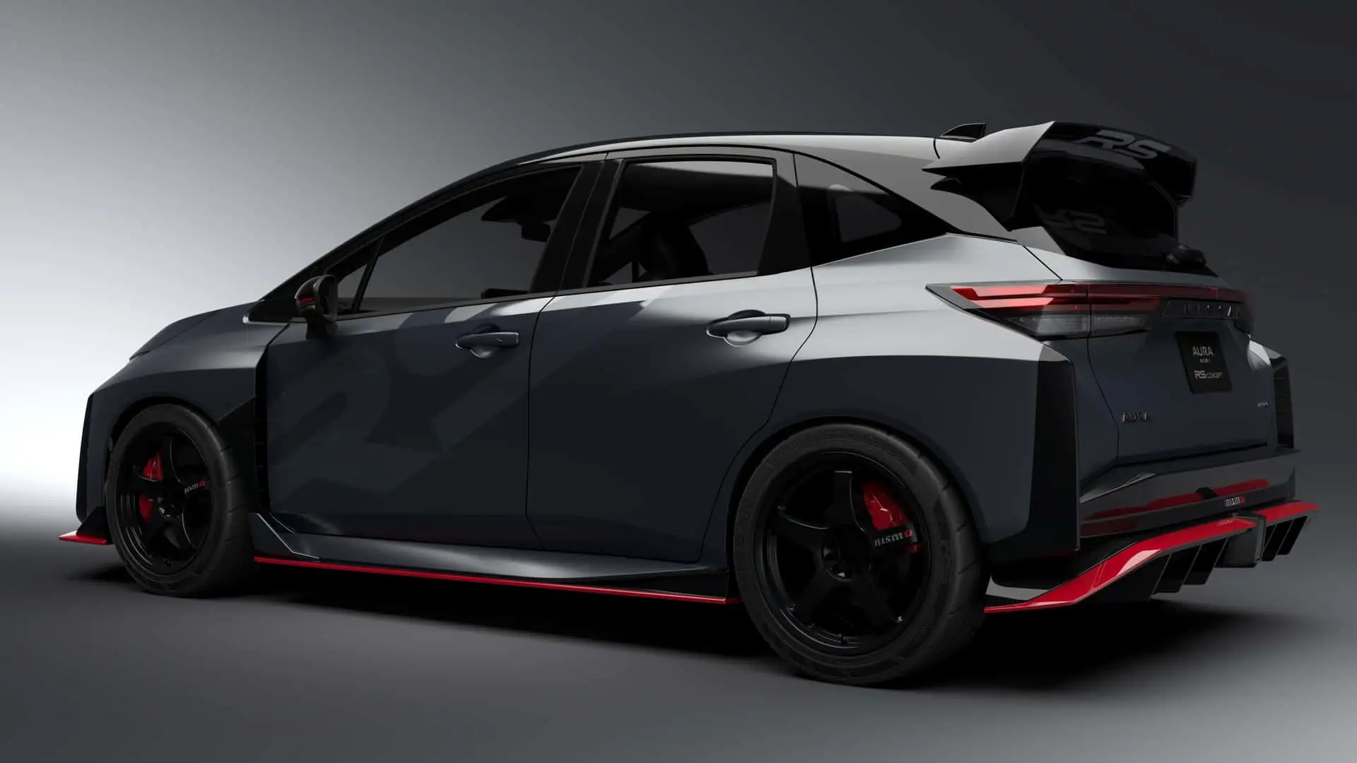 Secara visual, Aura Nismo RS Concept adalah pelajaran aerodinamika fungsional dan drama estetika. Bodinya dipermak secara drastis, menampilkan kit “widebody” yang menambah 145 mm lebar fender dibandingkan model standar. Postur berotot ini tidak hanya untuk menakuti di jalan, tetapi juga untuk menampung roda Nismo 18 inci berwarna hitam mengkilap dan ban bergrip tinggi yang memastikan setiap Newton-meter torsi disalurkan ke aspal. Suspensi dinaikkan 20 mm, memberikan pusat gravitasi yang lebih rendah dan siluet yang tampak “menempel” ke tanah, mengingatkan pada agresivitas mesin balap seperti Red Bull RB17 Hypercar, meskipun dalam skala yang jauh lebih urban dan terjangkau.