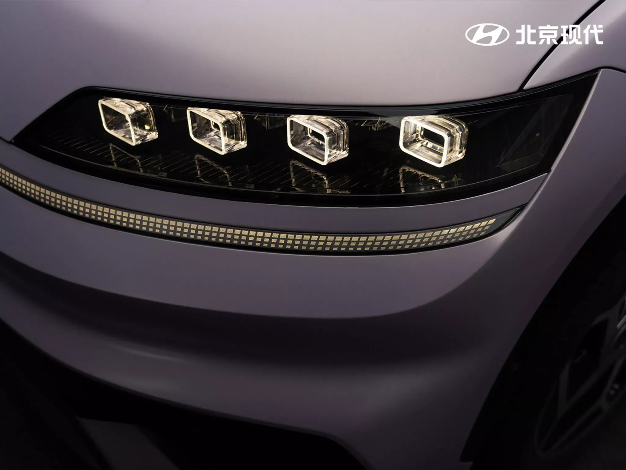 Esteticamente, la Hyundai Elexio sembra seguire il manuale degli EV moderni, ma con personalità. La griglia frontale è chiusa, e una barra luminosa LED larga tutta la larghezza abbraccia sia la parte anteriore che quella posteriore, conferendo un aspetto futuristico. Un dettaglio molto interessante sono i fari con cubi a quattro punti, un riferimento al numero 8, simbolo di fortuna in Cina – un chiaro omaggio culturale!