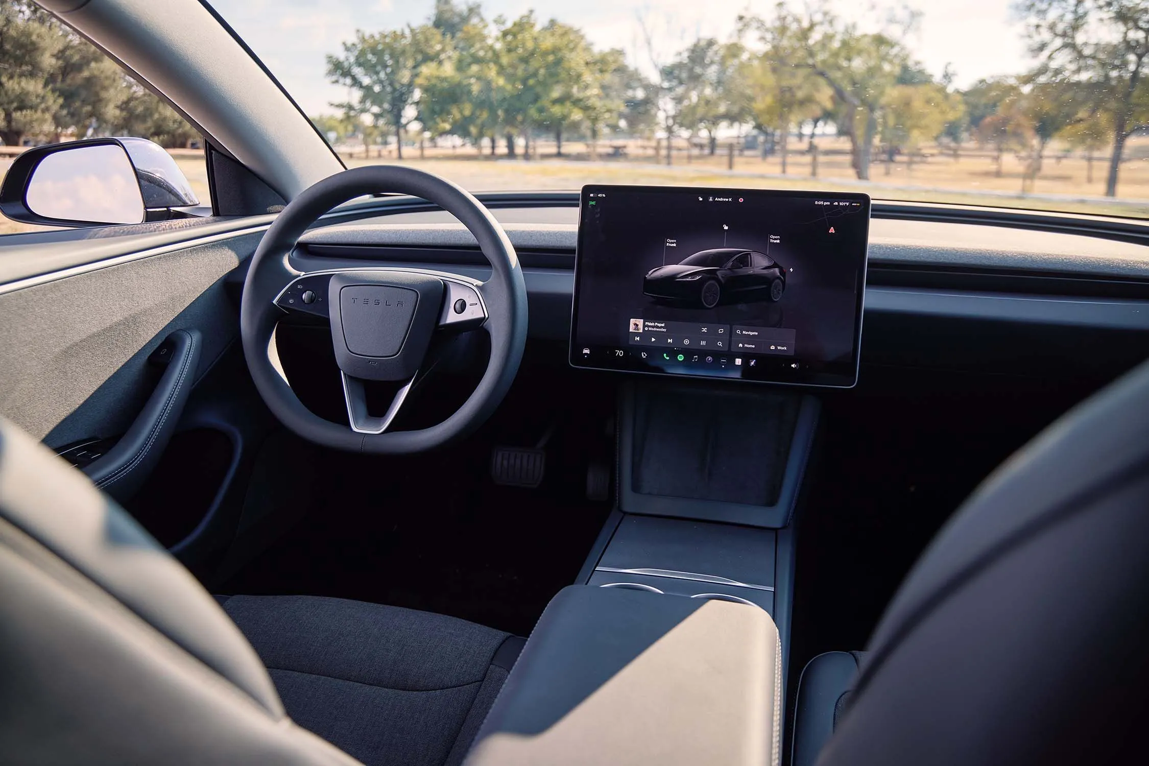 I cambiamenti interni sono simili, ma con meno “tagli”. Sono presenti i sedili tessili e l’assenza dello schermo posteriore, così come il volante manuale e la leva degli indicatori di direzione. Tuttavia, la Model 3 mantiene l’accesso visivo al tetto panoramico in vetro, senza il rivestimento interno visto sulla Model Y Standard. Per maggiori informazioni sulla Model 3 e le sue specifiche, consulta la scheda tecnica della Tesla Model 3 2025.