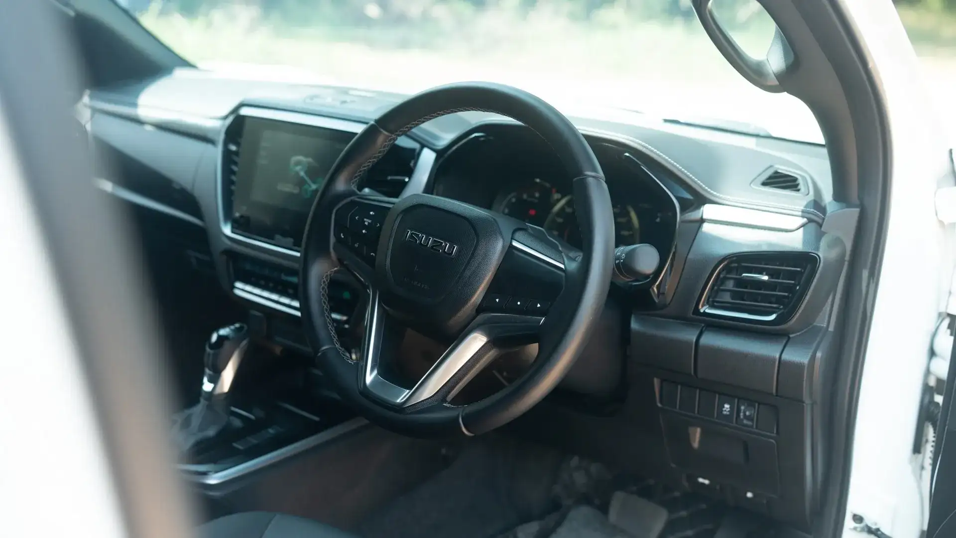 Il sistema 4WD è “part-time”, il che significa che è pensato per superfici non asfaltate, invece che per il lavoro costante da trazione integrale su asfalto. Non c’è un differenziale centrale, quindi il D-Max non può essere lasciato in 4WD sulle strade asfaltate come possono fare alcuni sistemi rivali. Seduti al posto di guida, l’hardware è sorprendentemente diretto: una leva selettore massiccia, l’attivazione con un solo pulsante per la modalità Rough Terrain, 2H su 4H mentre si è in marcia e 4L che richiede una sosta. È esattamente il tipo di impostazione che premia l’uso reale, più che la coreografia di un touchscreen.